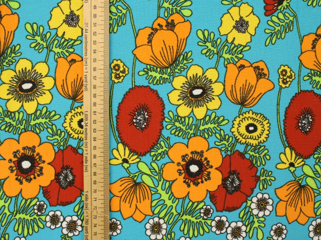 明るい色合いのレトロな花柄。