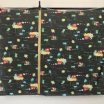 黒地に原色のポップな色合い。