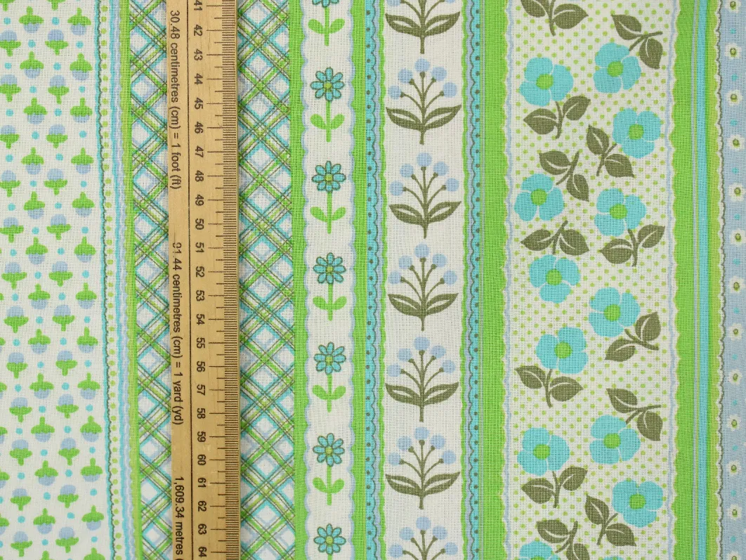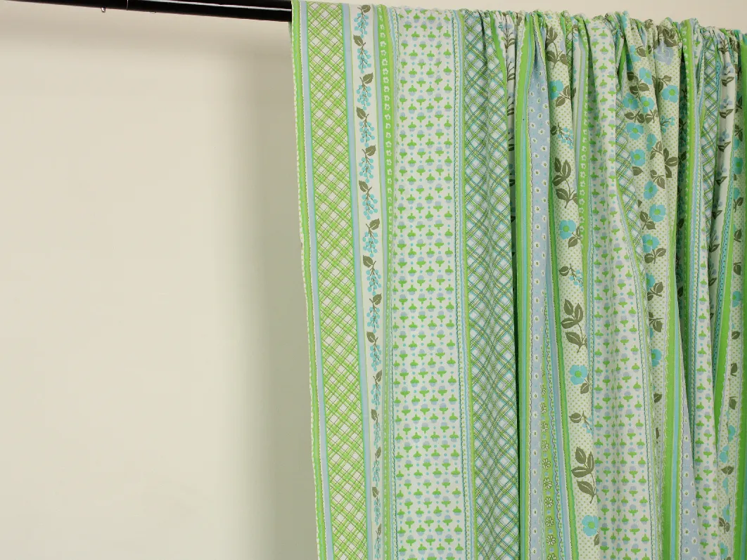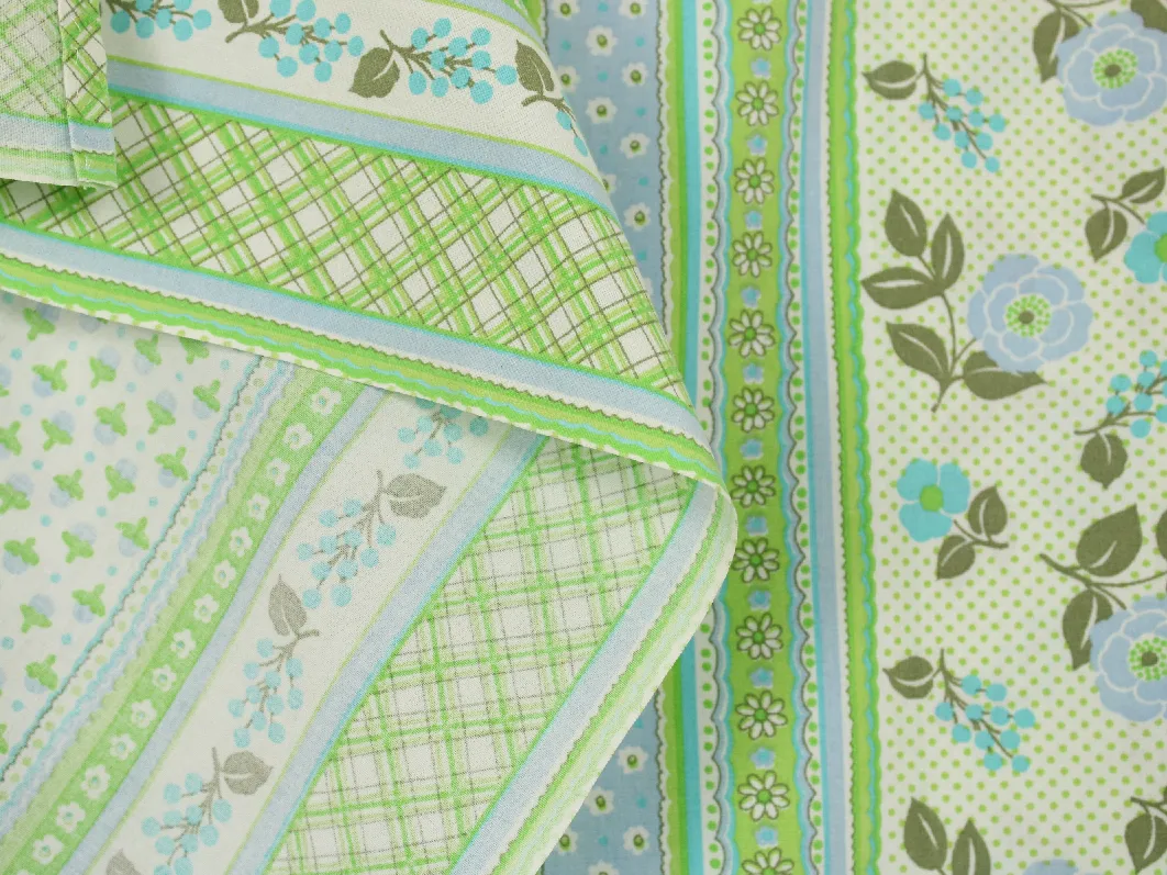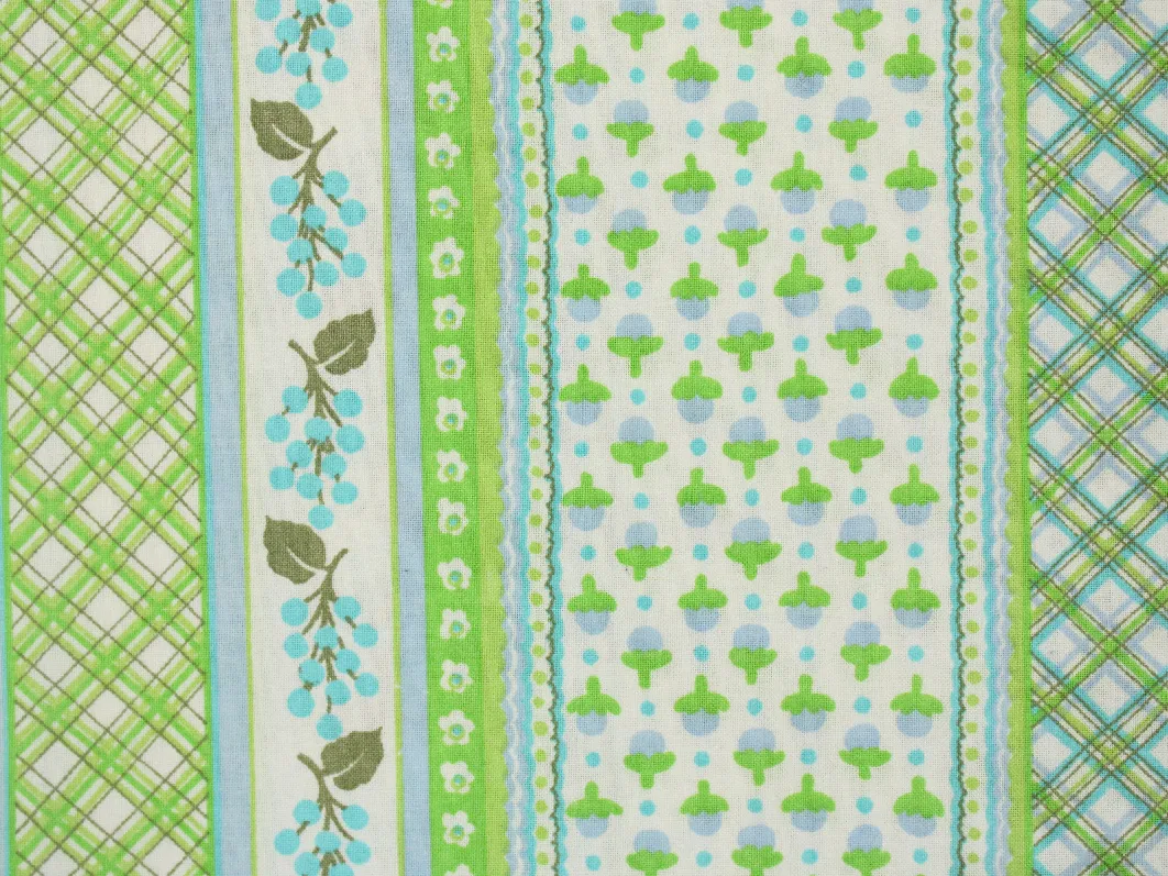 85*45 かわいい 小花 チェック ストライプ レース グリーン