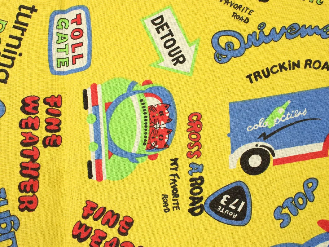 カラフル&ポップなロゴや標識の絵柄。