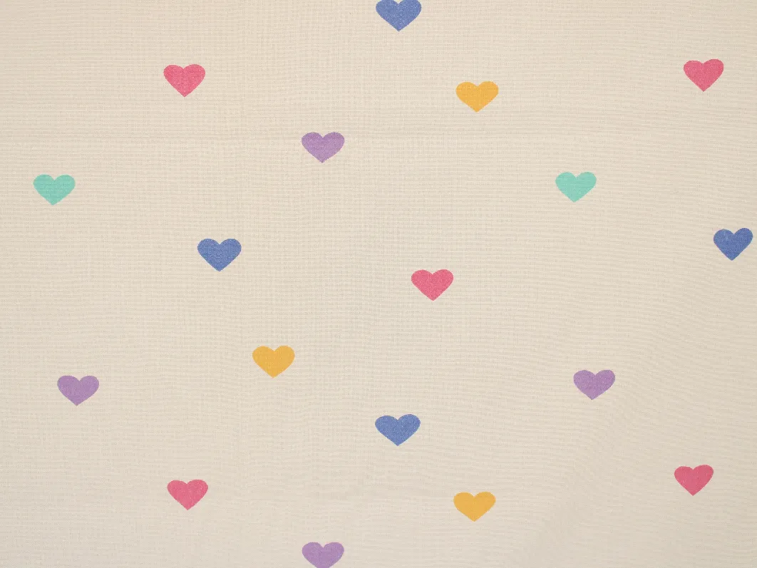 白地にカラフルなハート柄。
