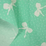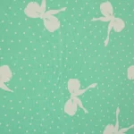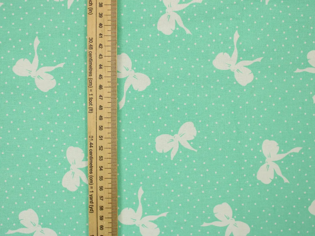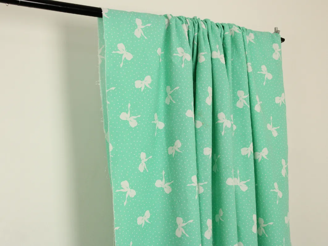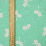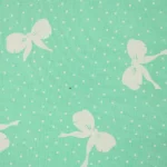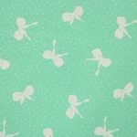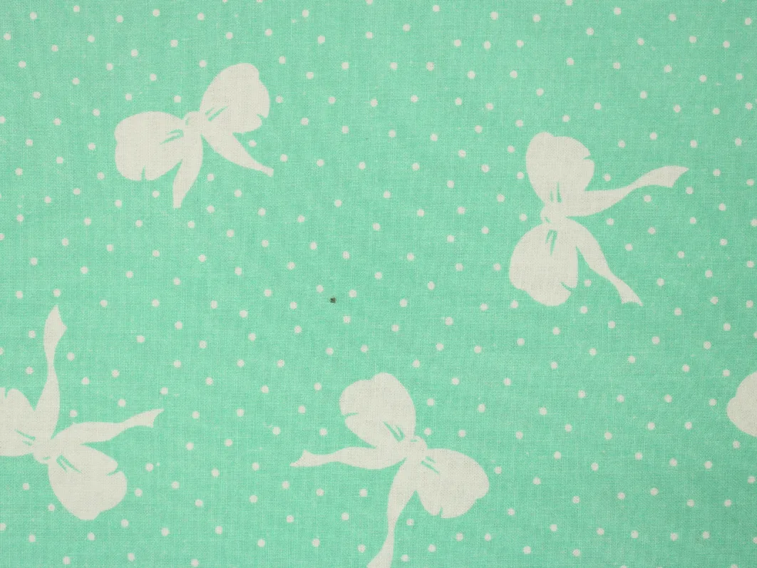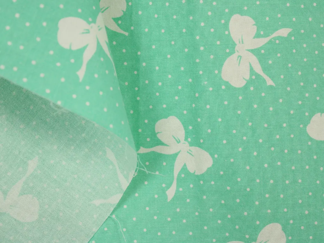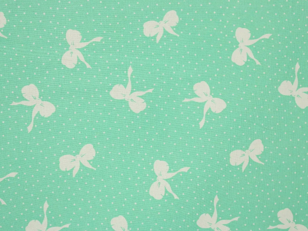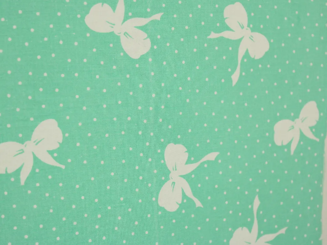 エメラルドグリーン地に、リボンとドットのレトロなパターン柄。