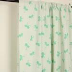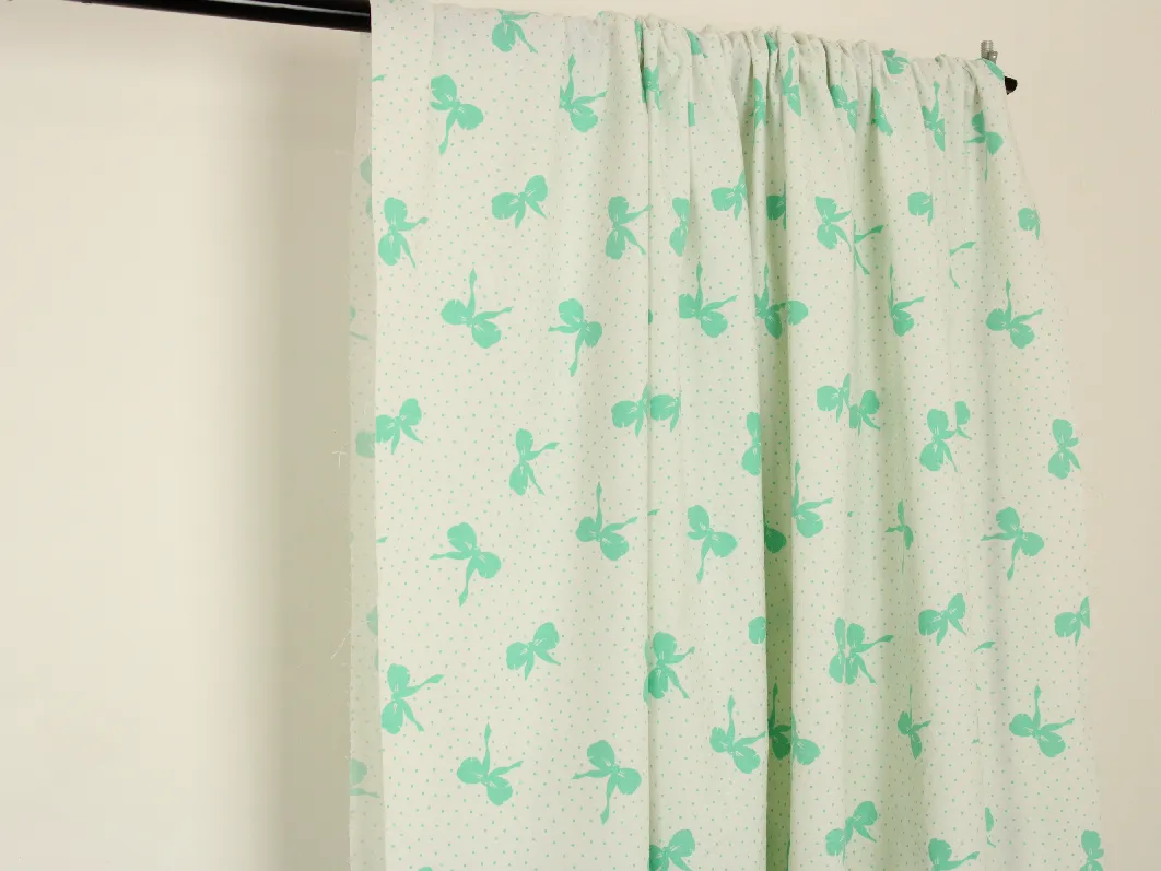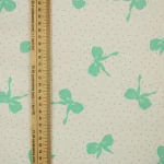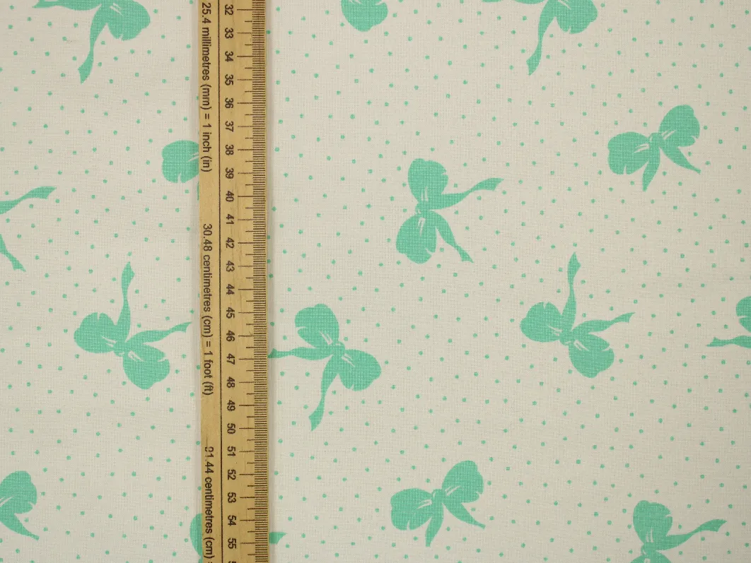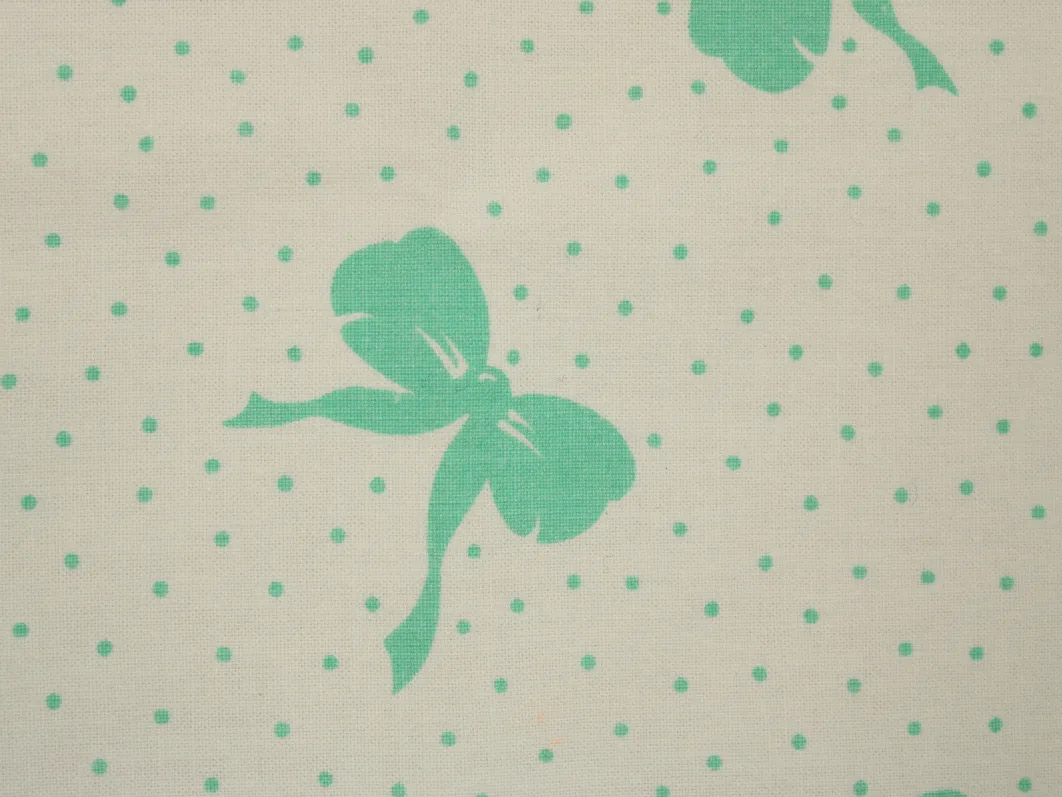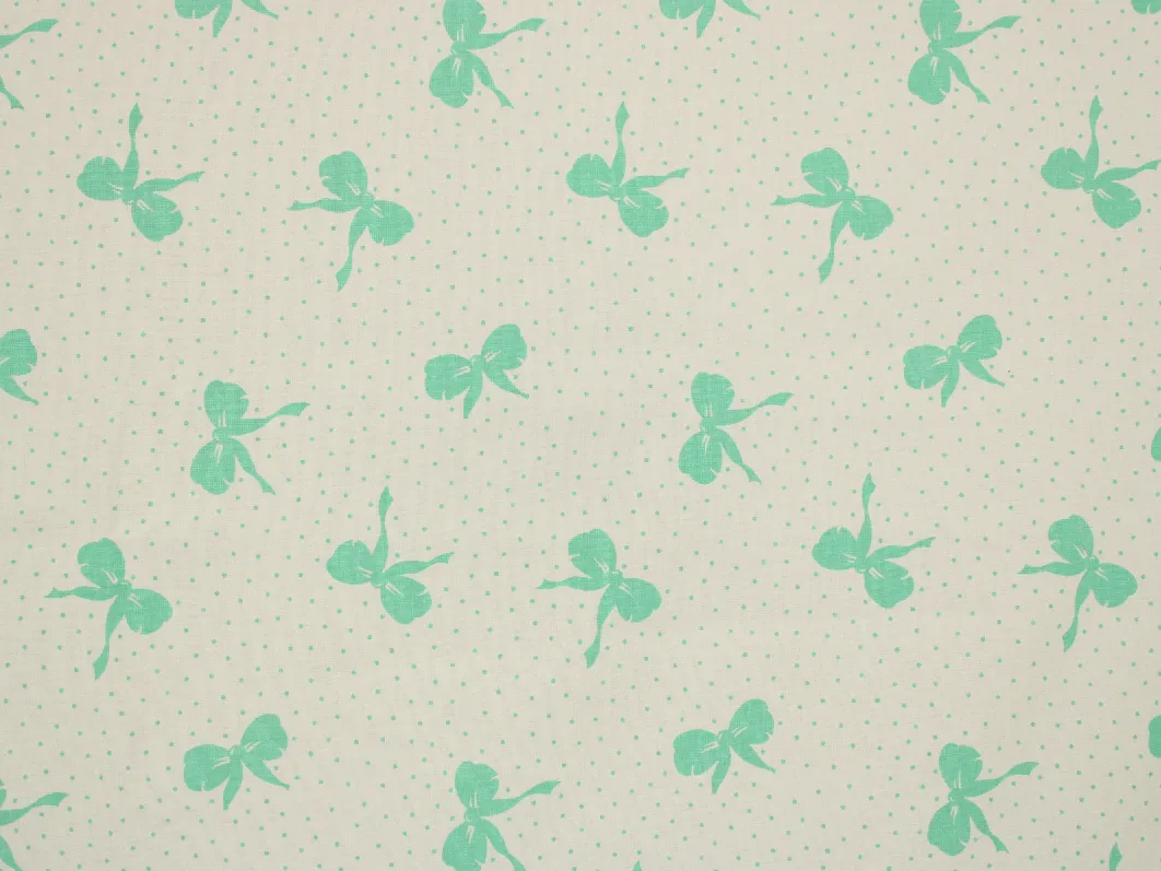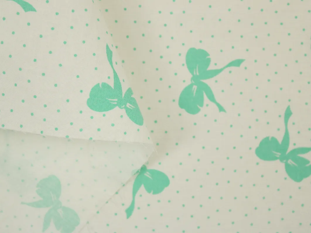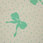 白地に、エメラルドグリーンのリボンとドットのレトロなパターン柄。