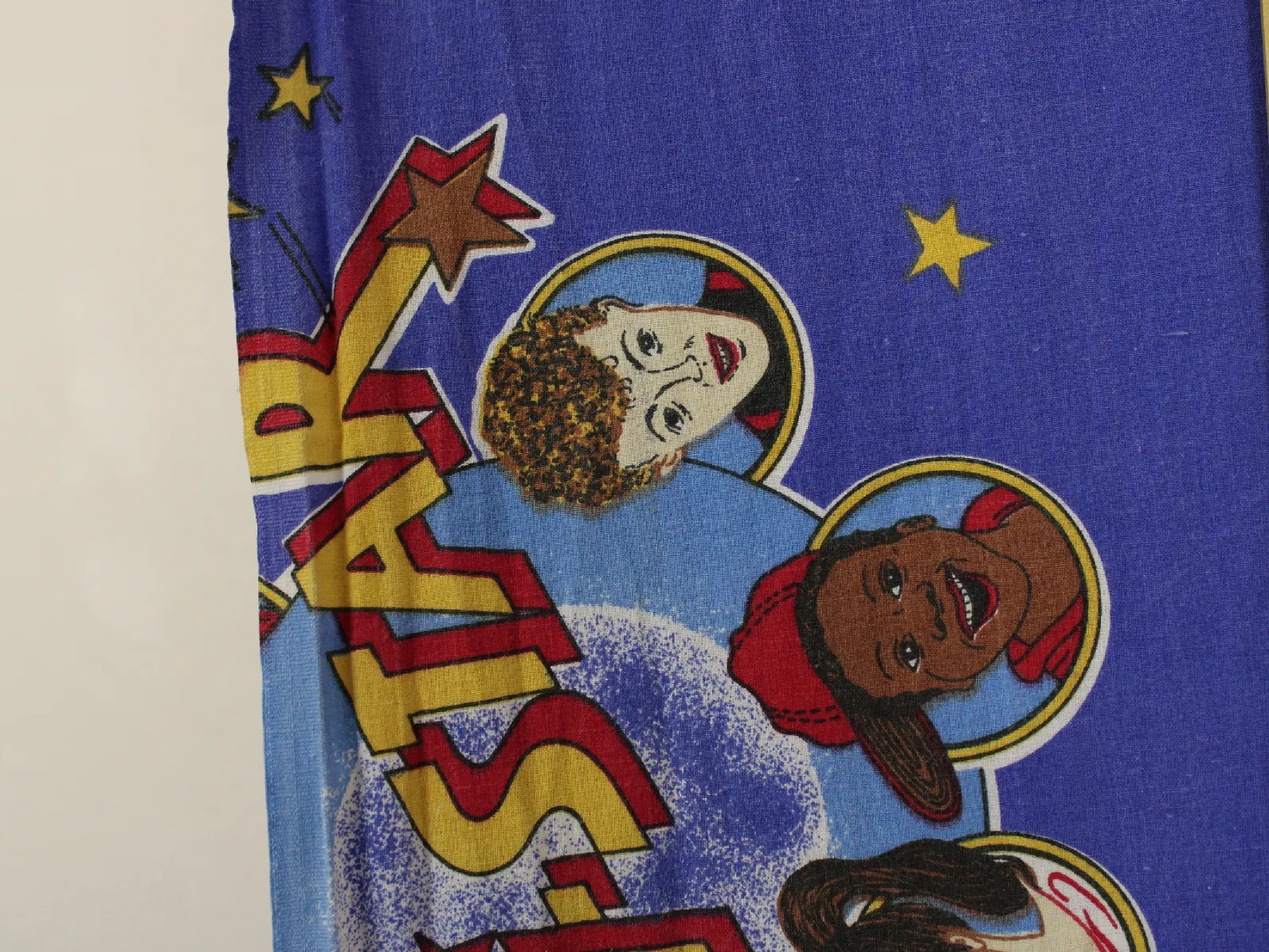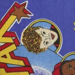 レトロポップなロゴとイラスト柄です。