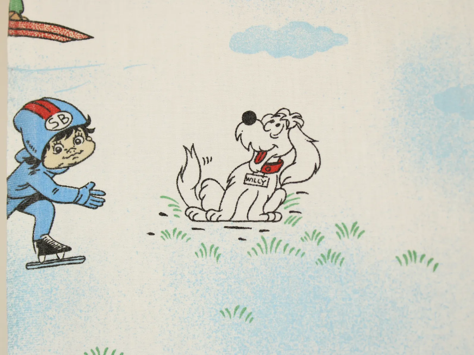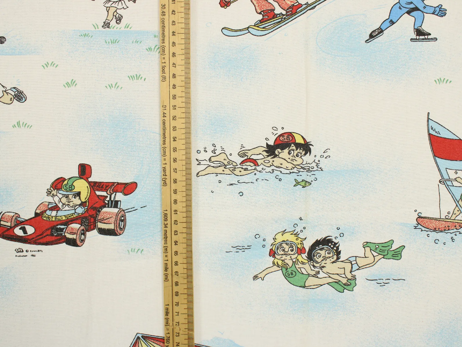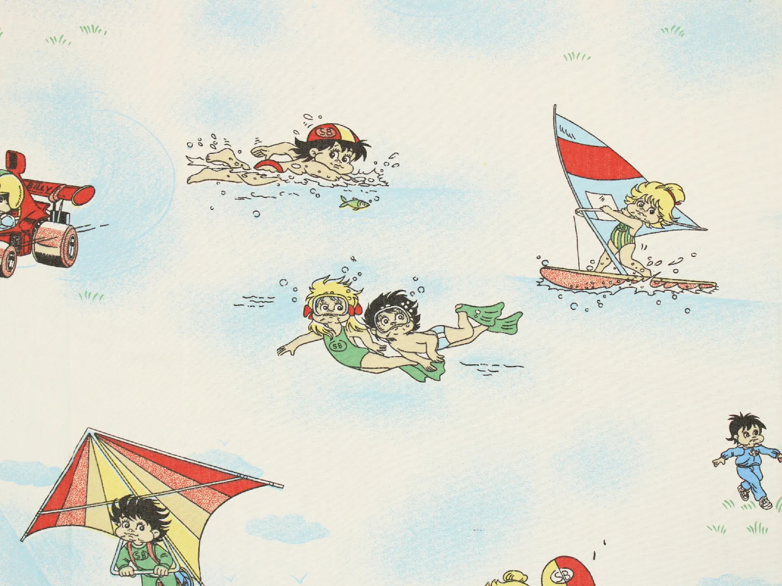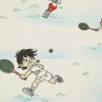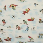 色々なスポーツをするビリー、リリーとウィリーが描かれた生地です。