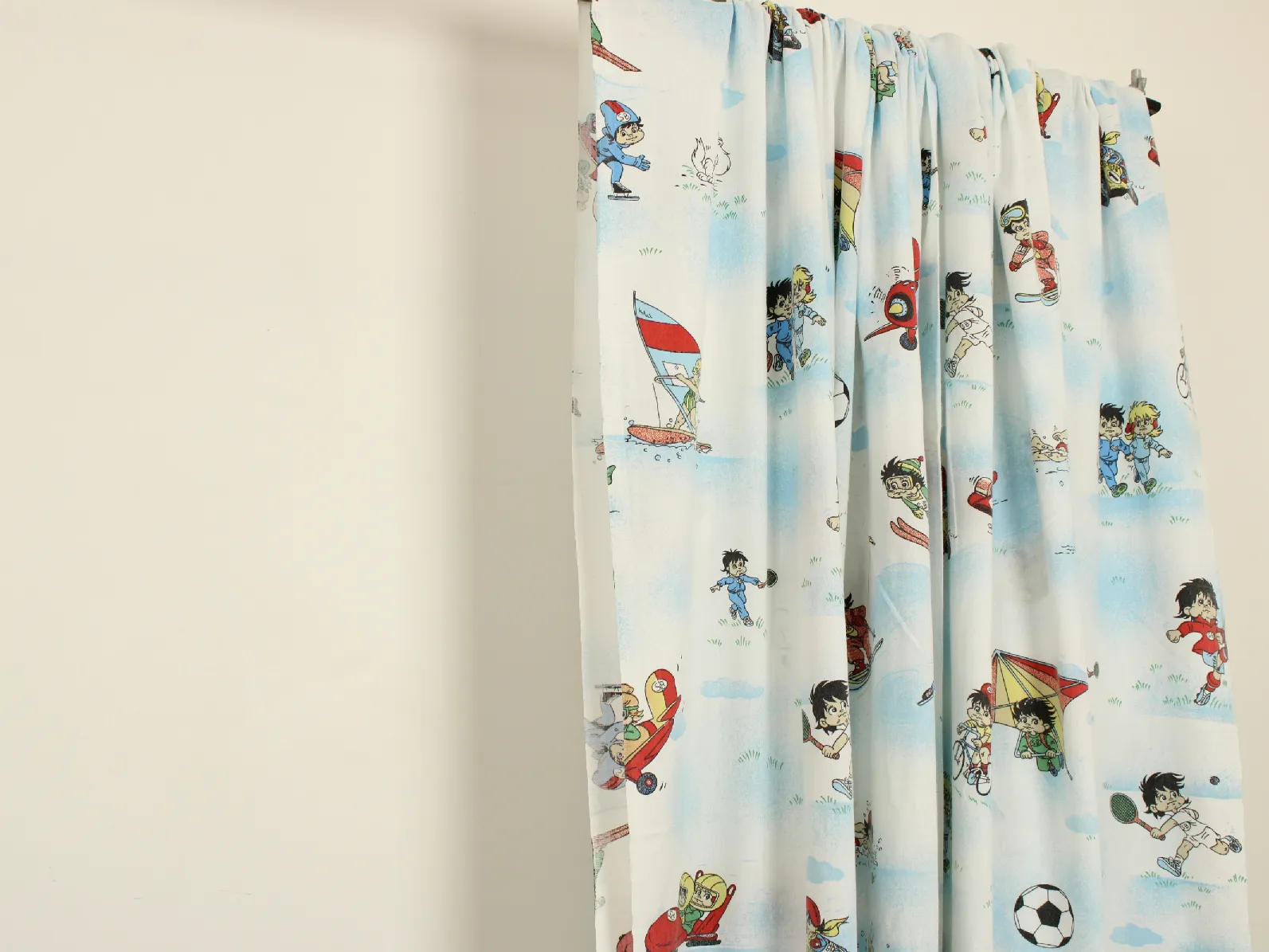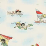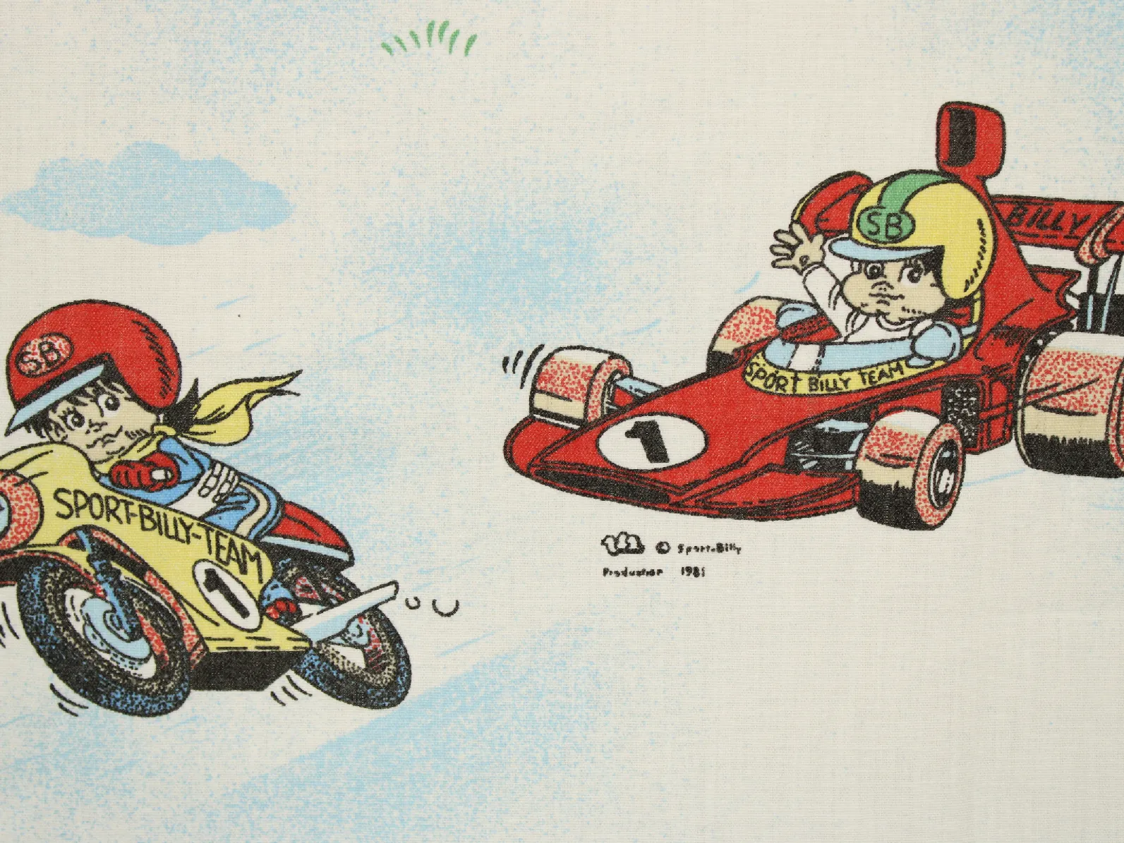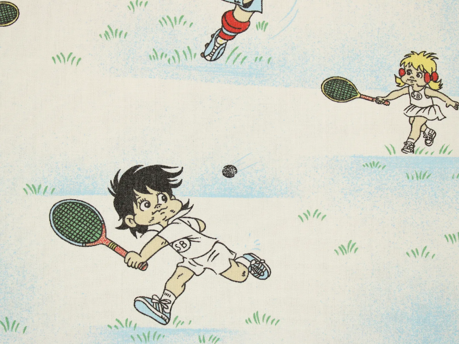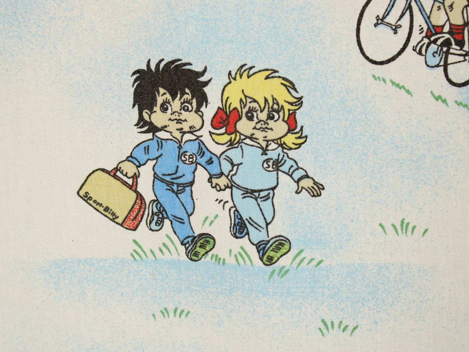 色々なスポーツをするビリー、リリーとウィリーが描かれた生地です。
