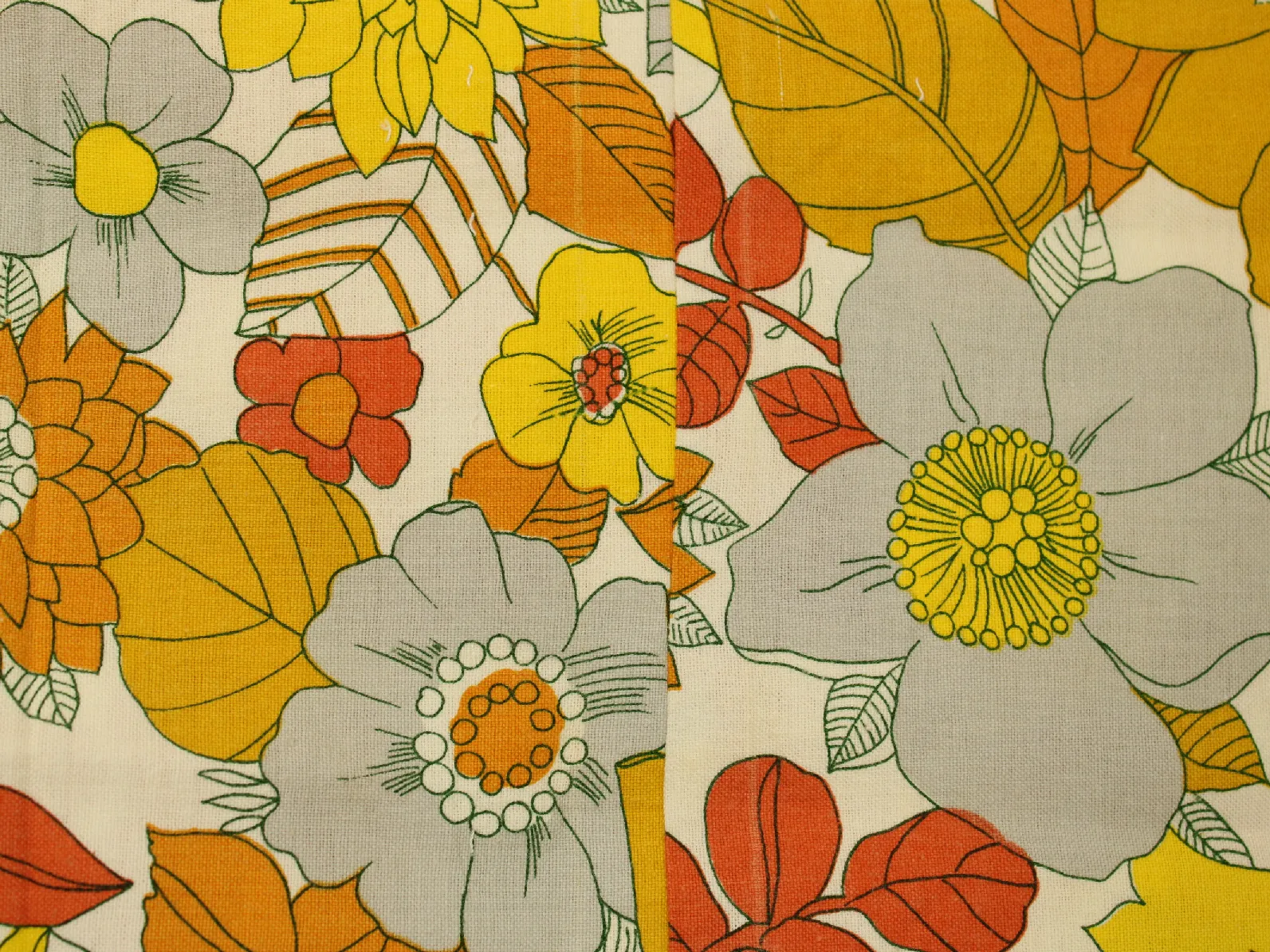ピローカバー レトロシック 花 イエロー オレンジ B