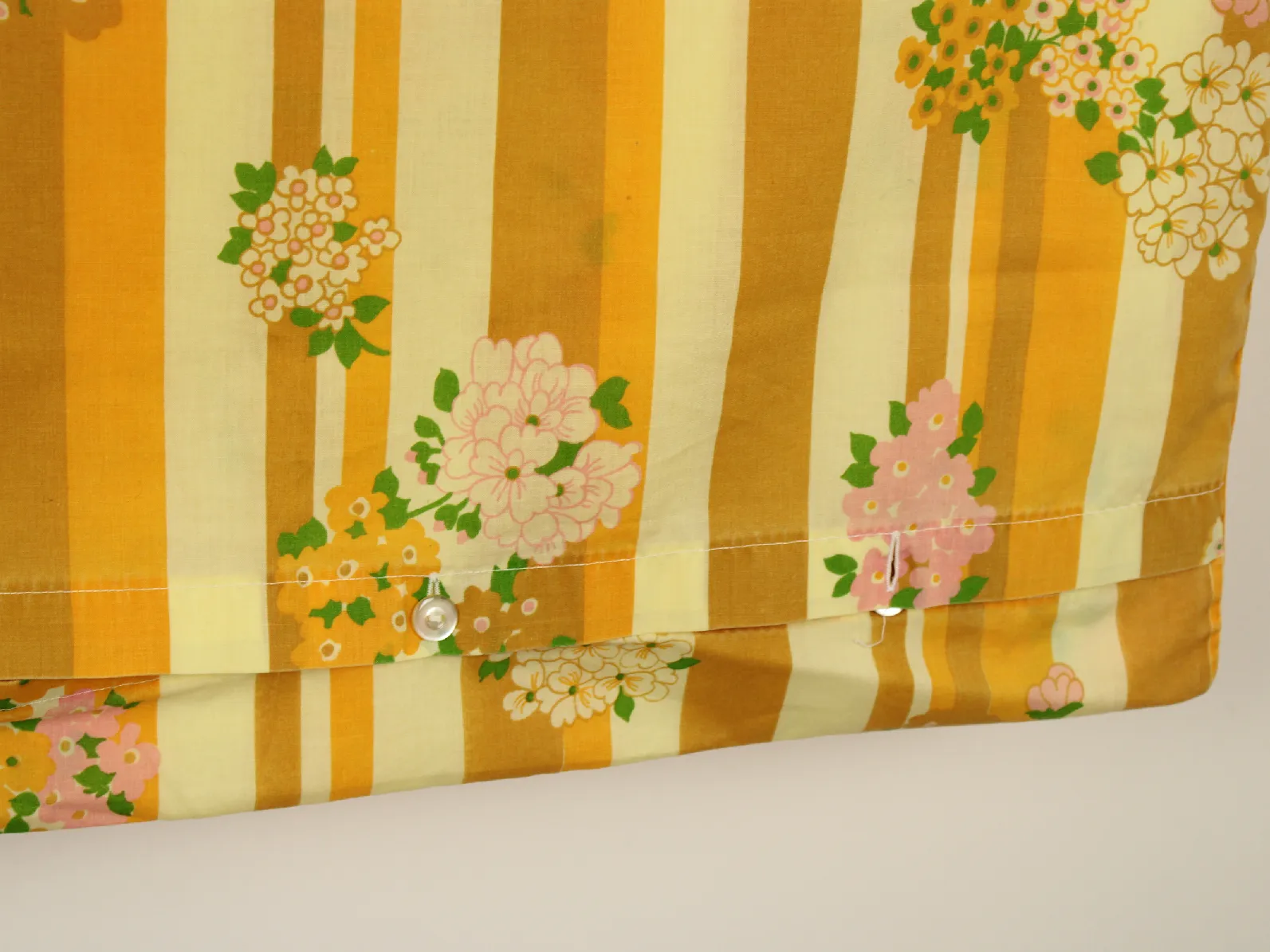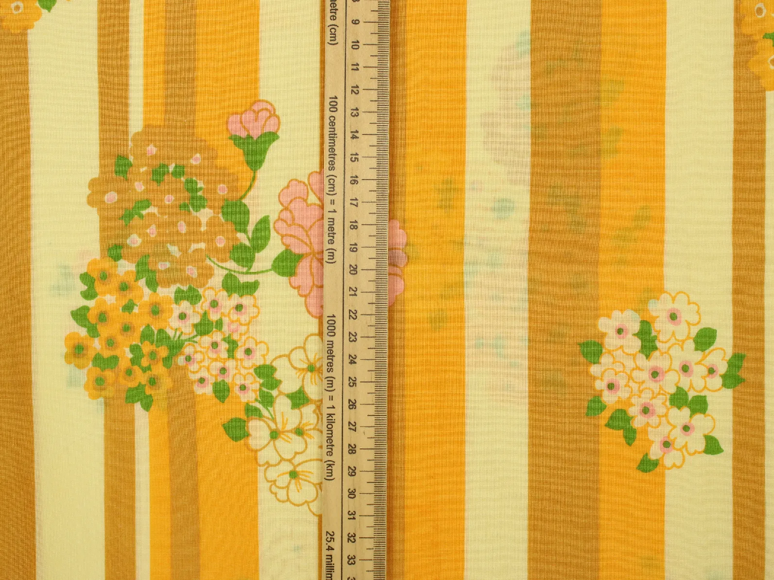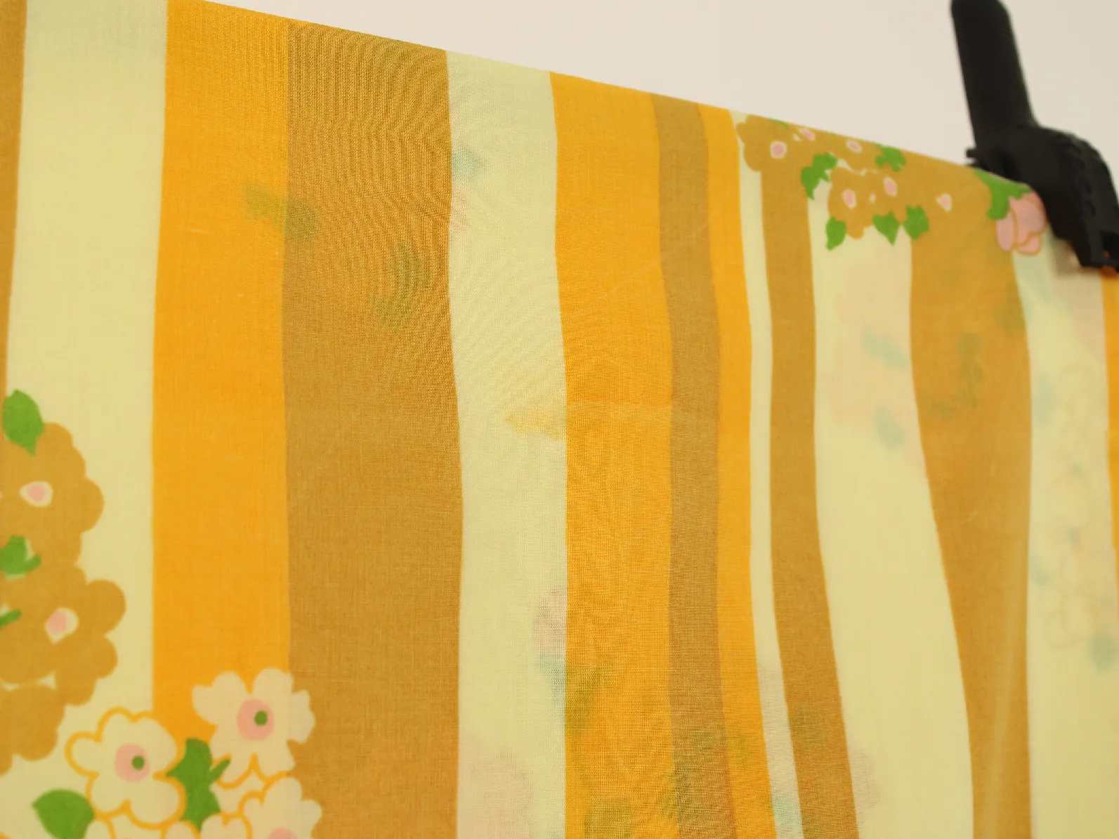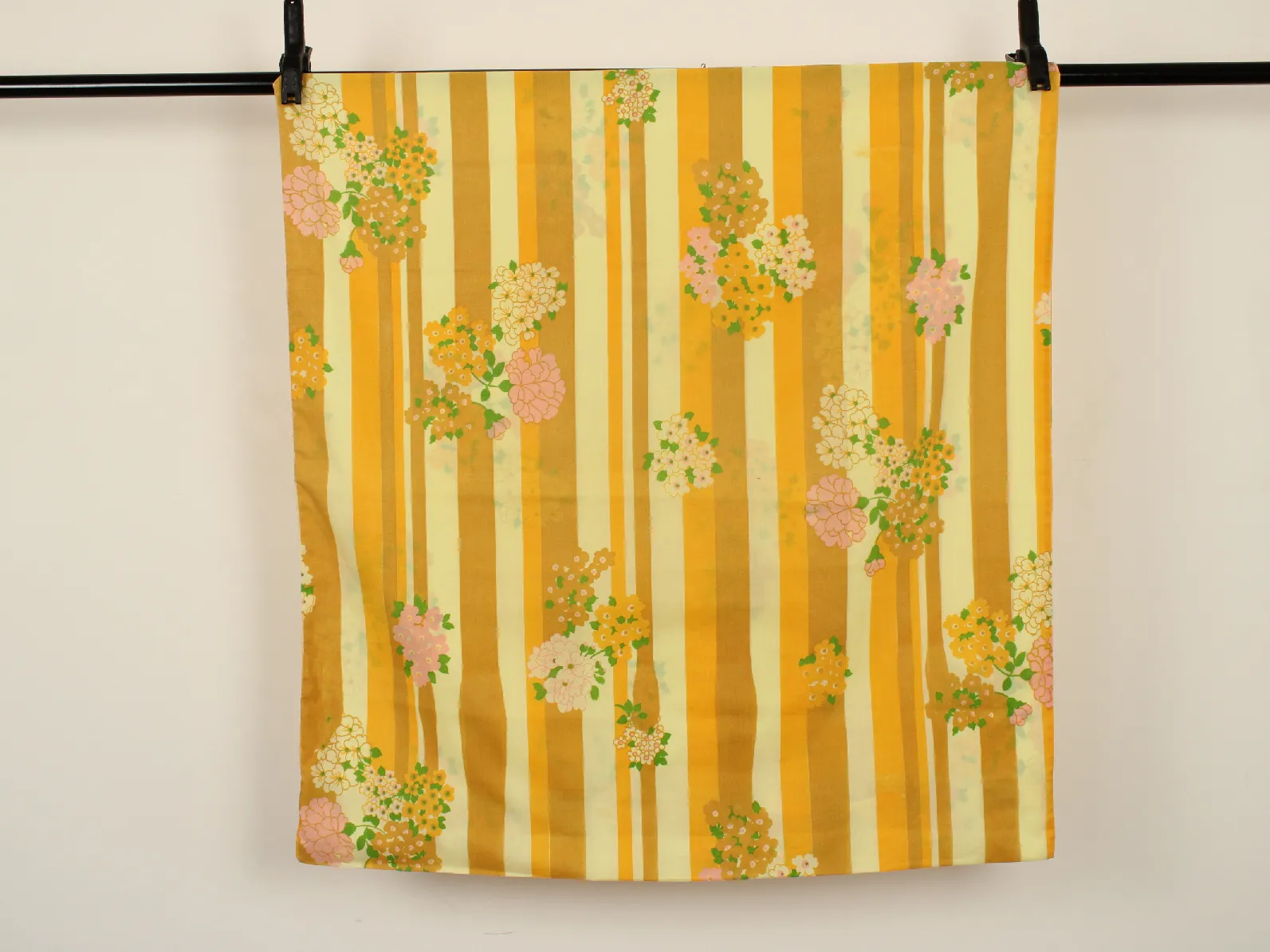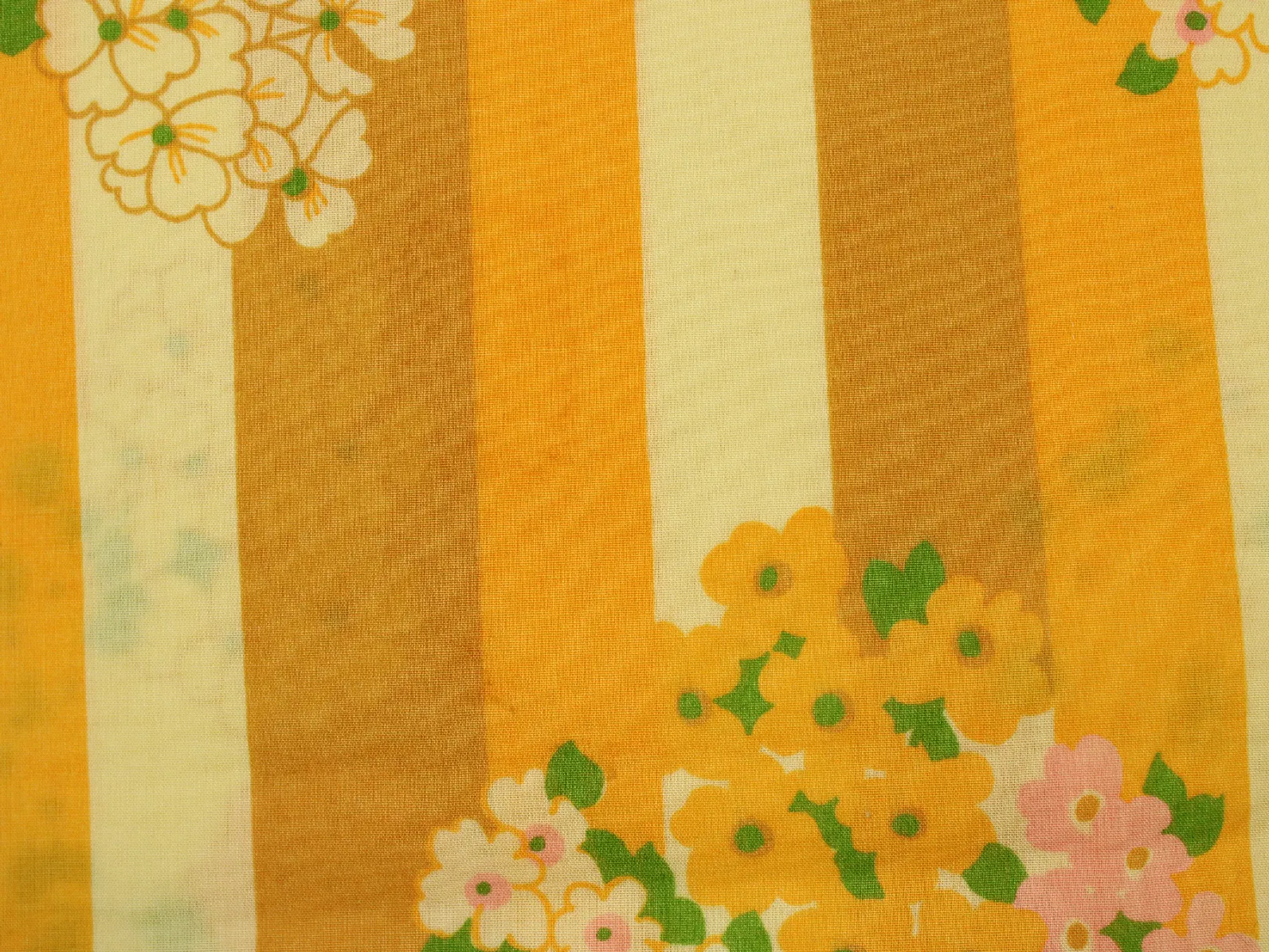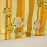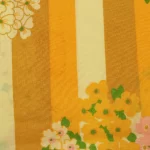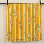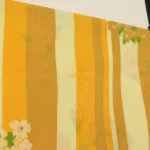 暖かな黄色、山吹色のストライプと花柄。