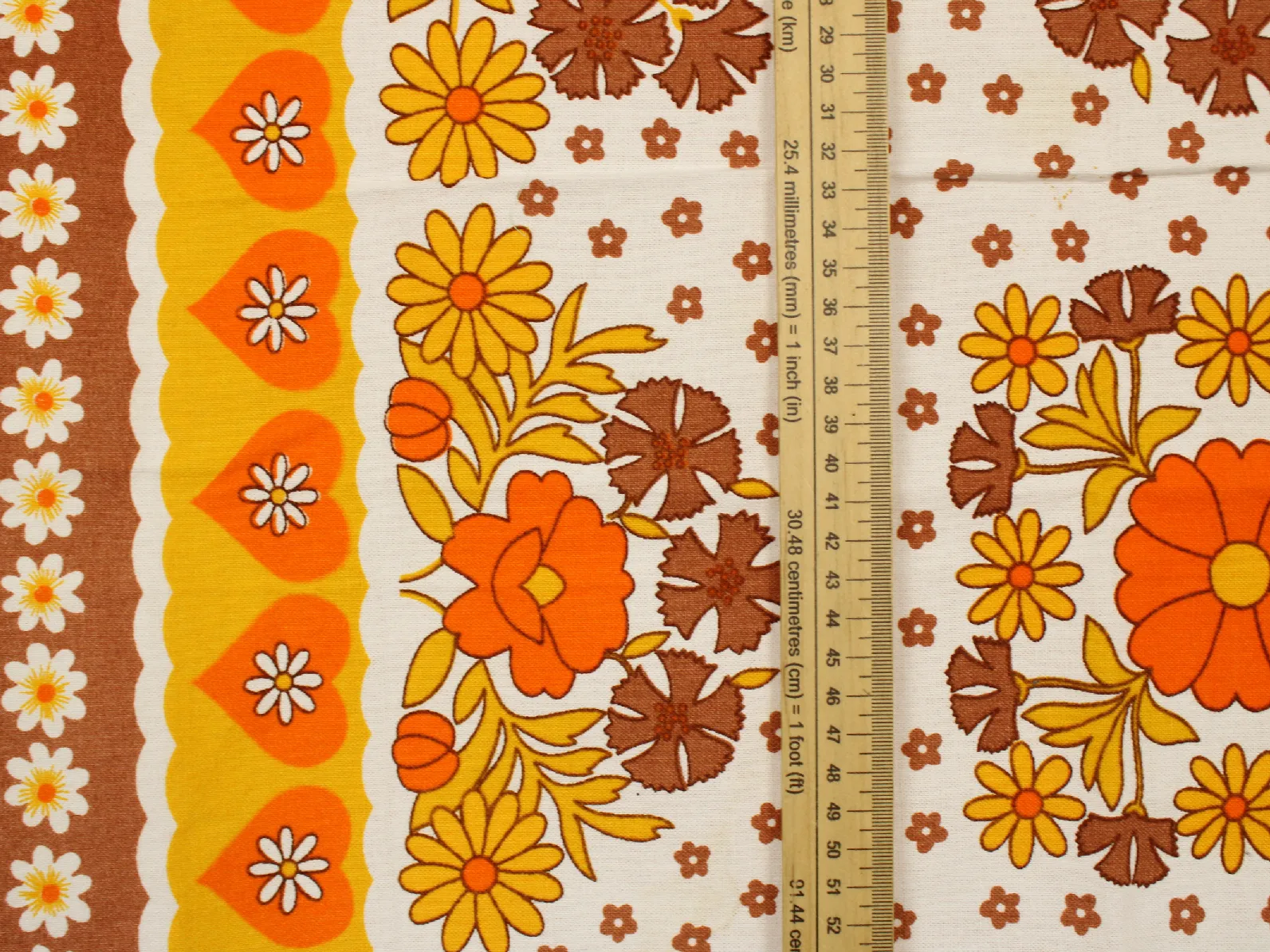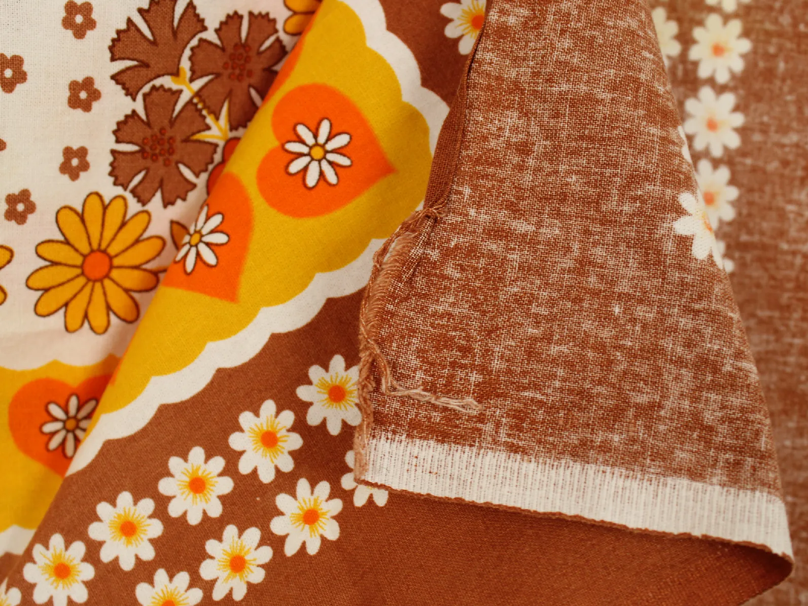 テーブルクロス レトロ 花 ハート パターン オレンジ ブラウン