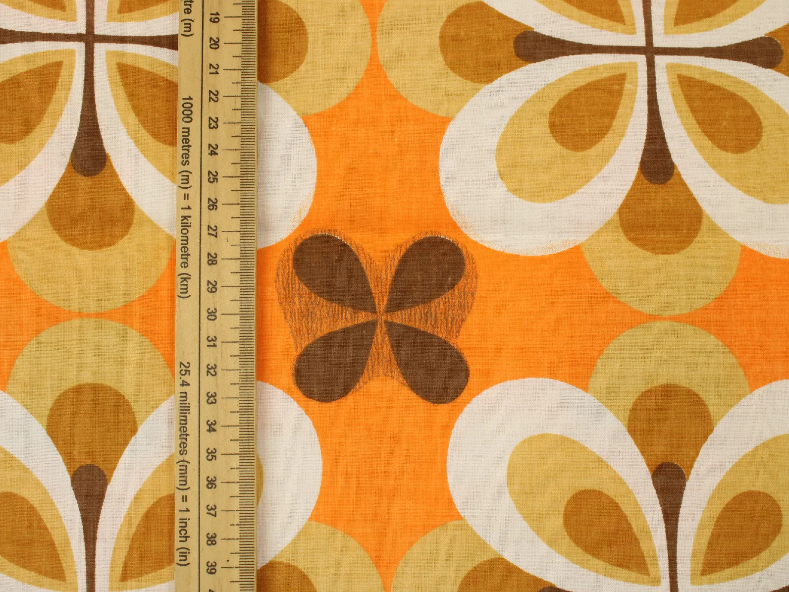 橙〜茶色のレトロな花のパターン。