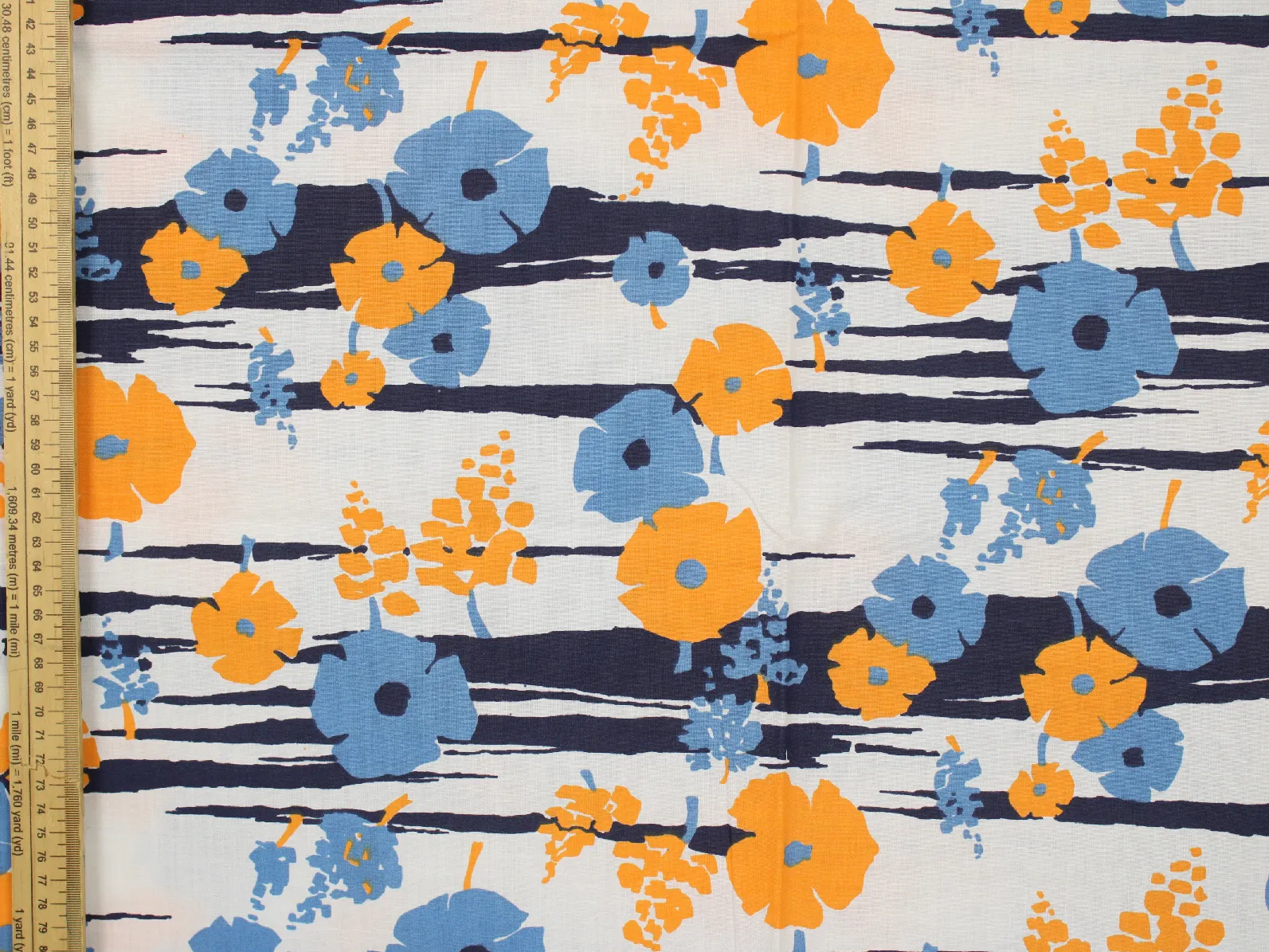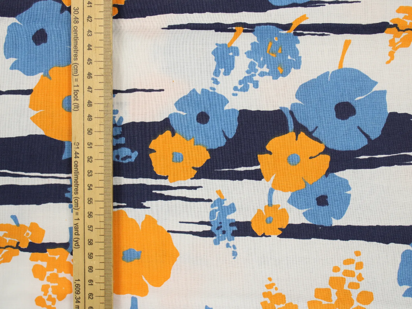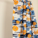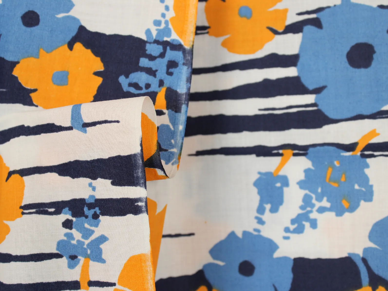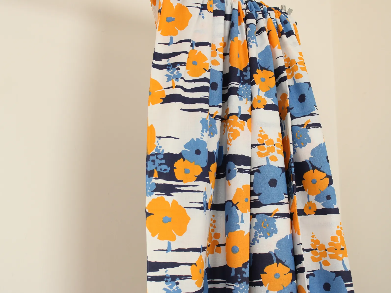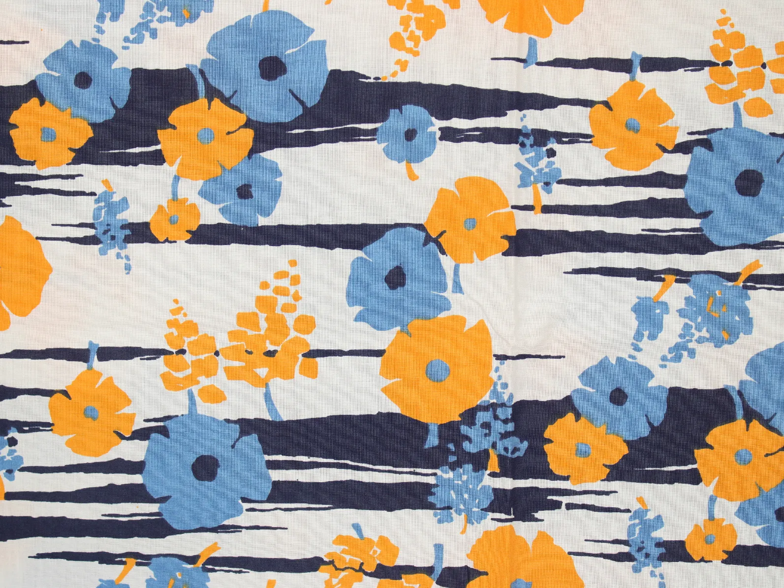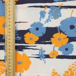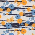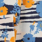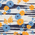 暖かみのある黄色と水色のレトロな花柄。