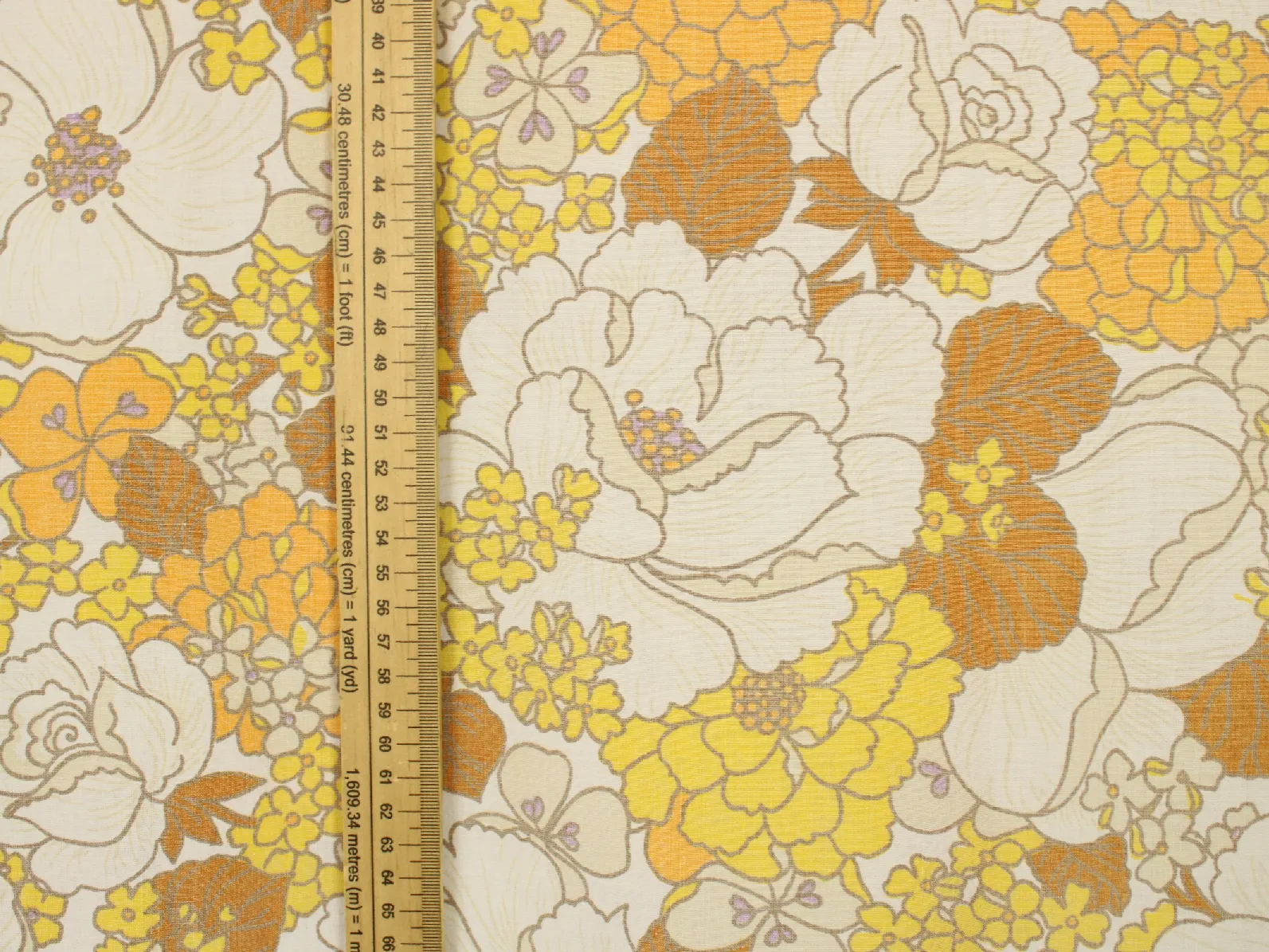 55*60 レトロ シック 花 イエロー オレンジ ブラウン