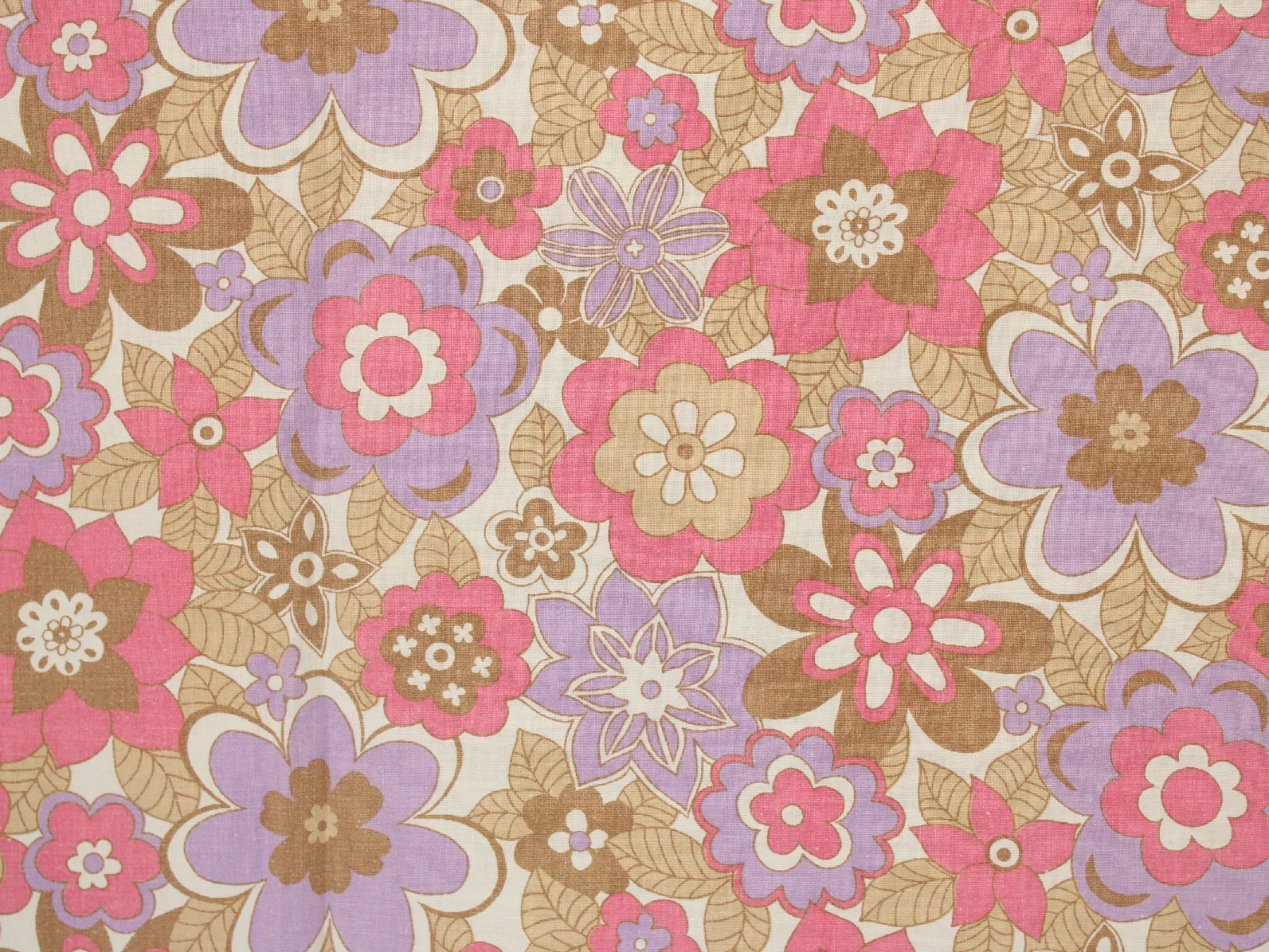 70*50 レトロ かわいい 花 ピンク パープル ベージュ