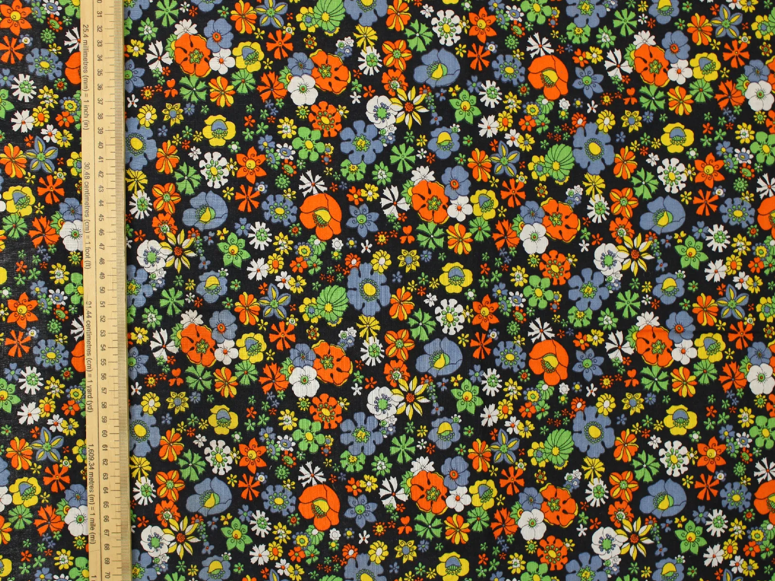 40*60 レトロ カラフル サイケデリック 花 カラフル 黒