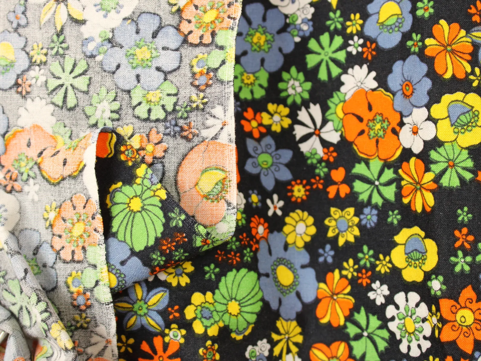黒地にレトロ&カラフルな花々。