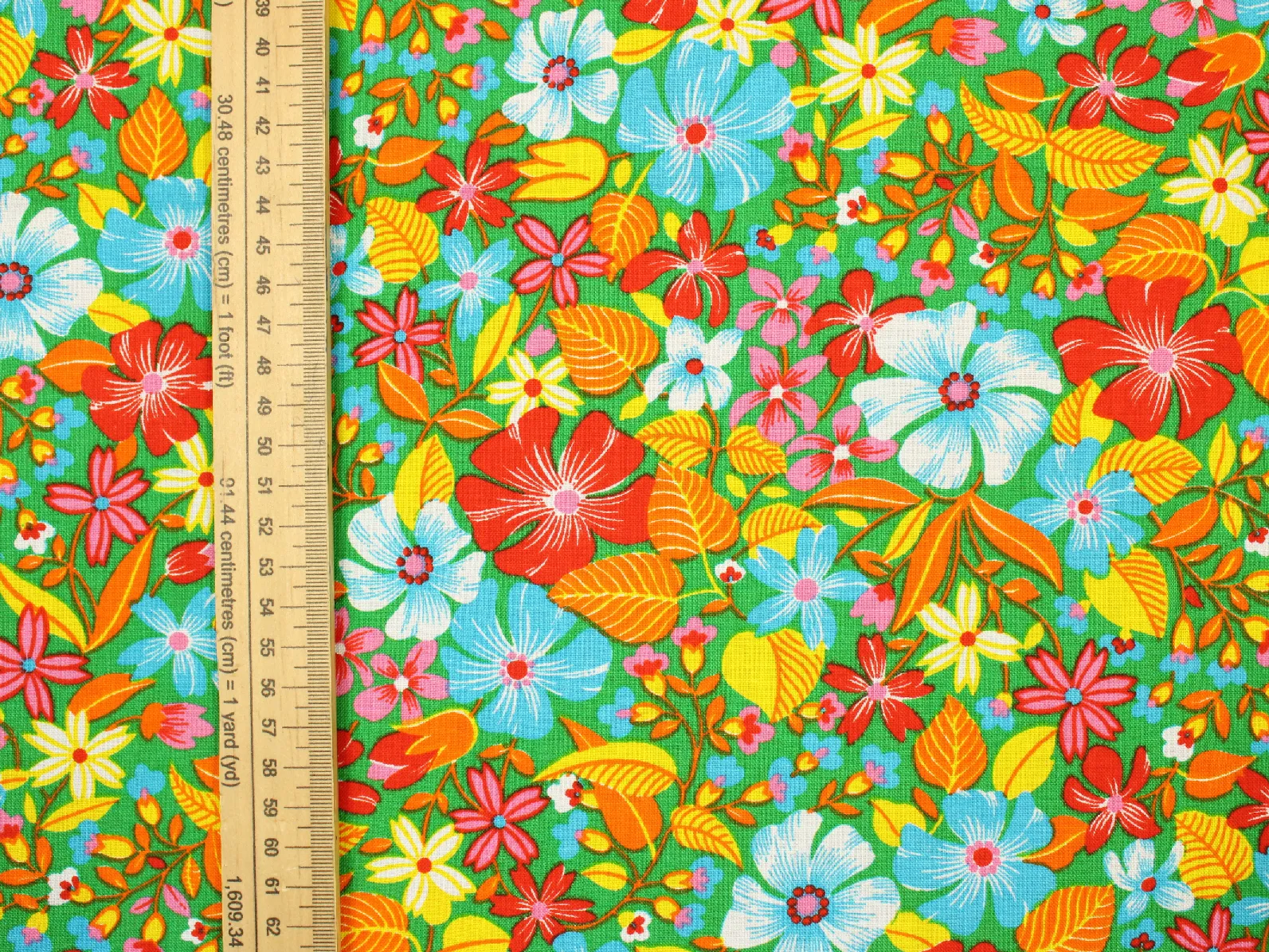 パワフルな原色カラーの花柄。