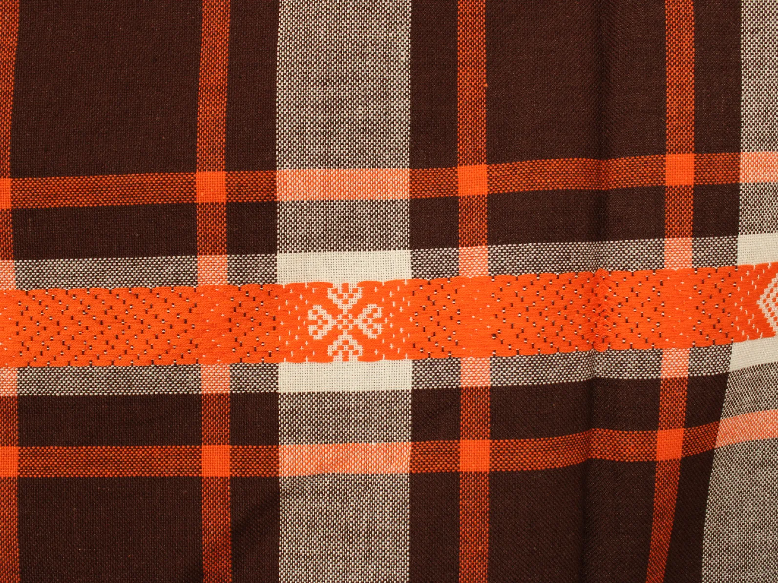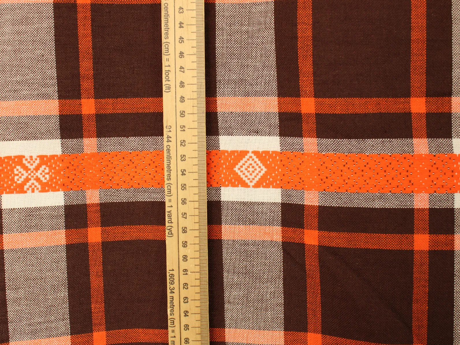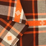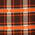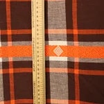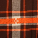 70*55 レトロ 先染めチェック 織り込み刺繍 オレンジ ブラウン