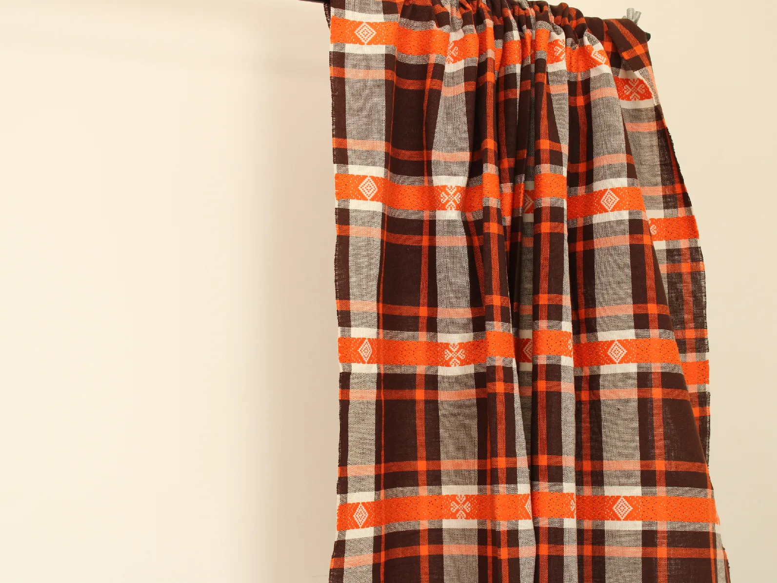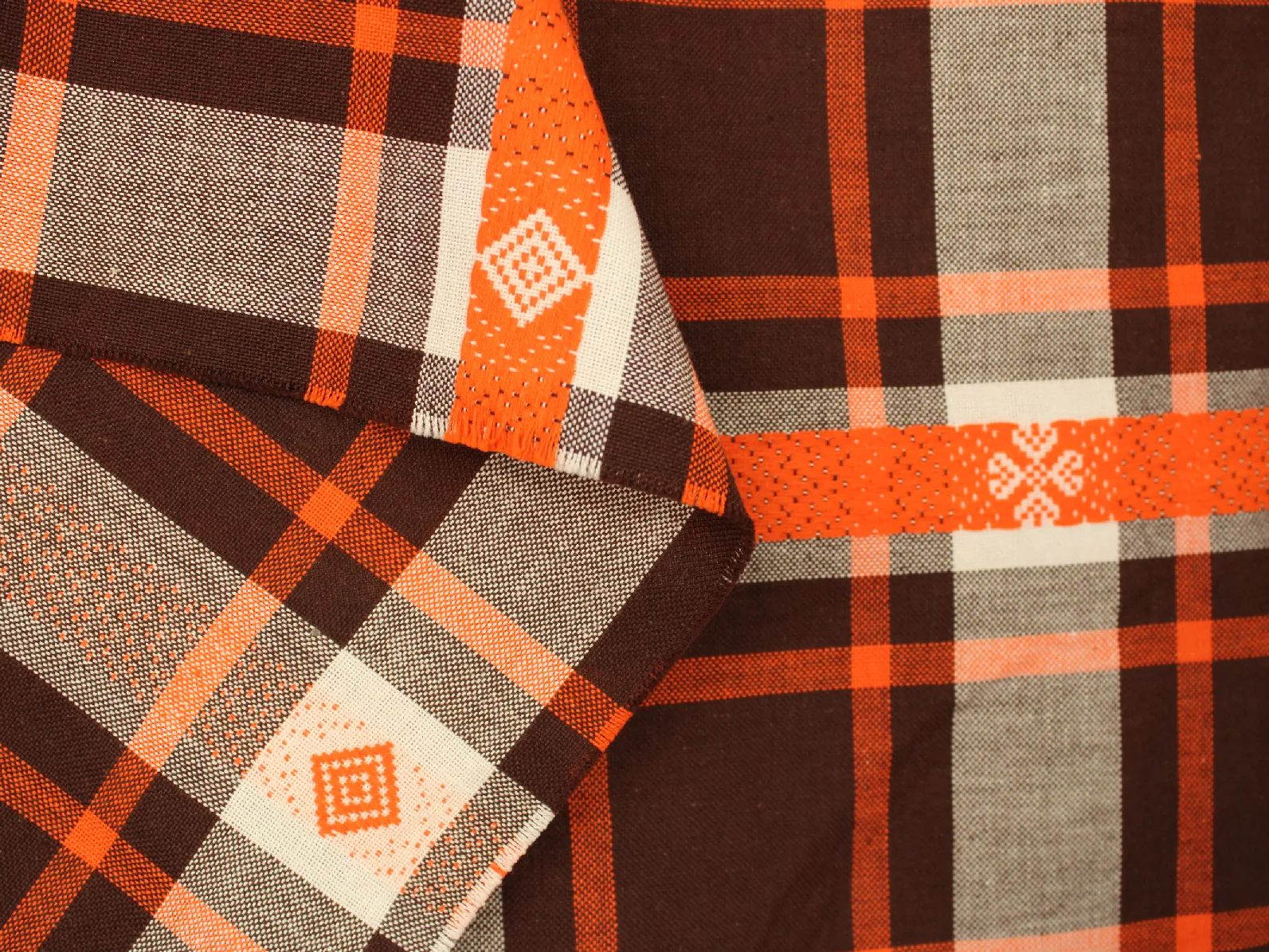 濃茶とオレンジの暖かなチェック模様。