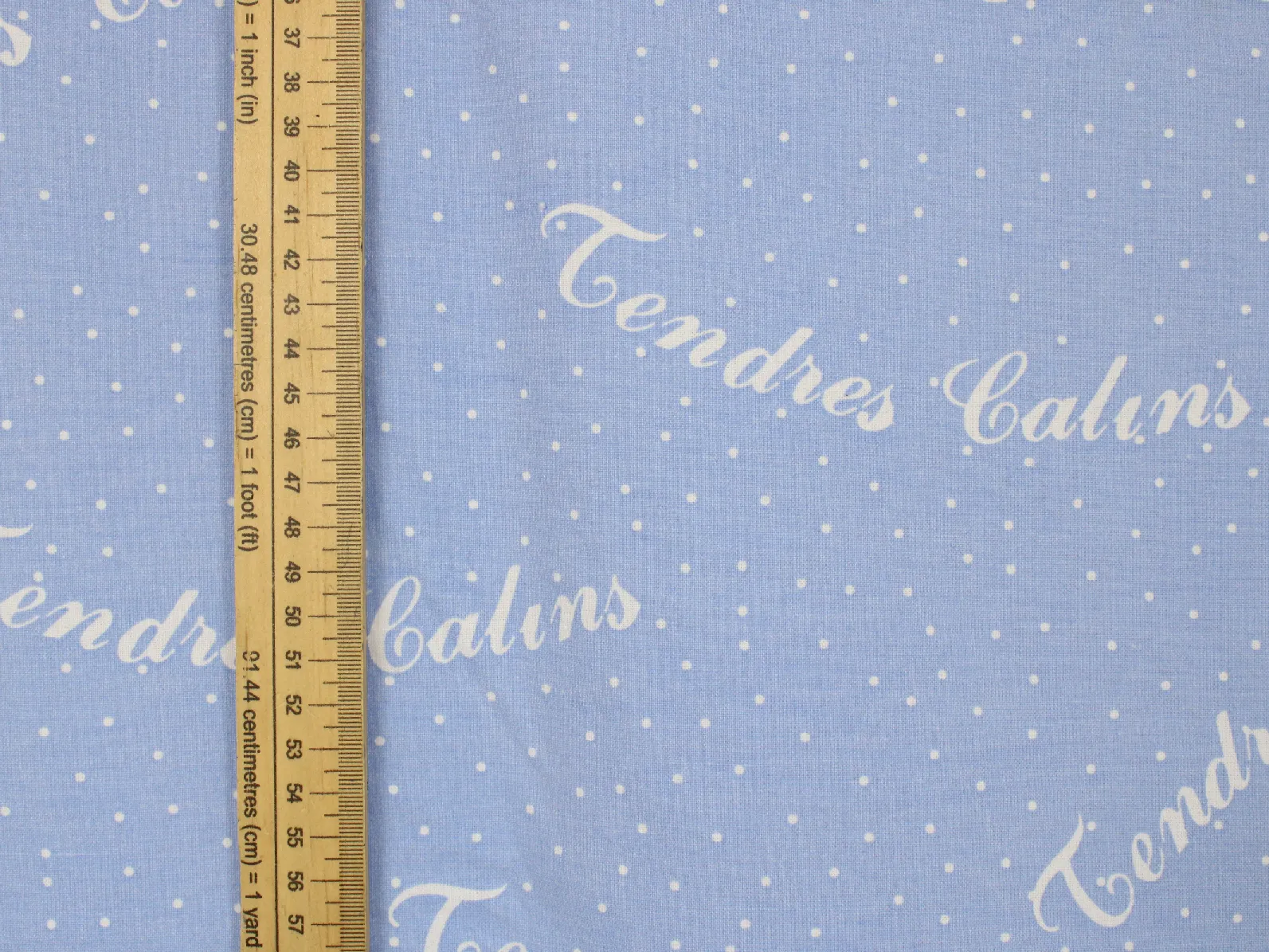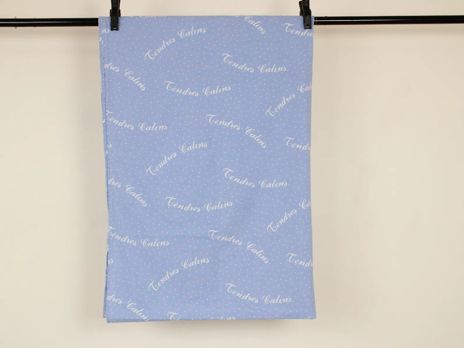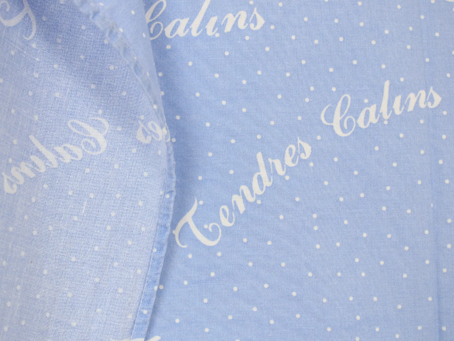 水色ドット地に、Tendre Calinsのフランス語ロゴ。