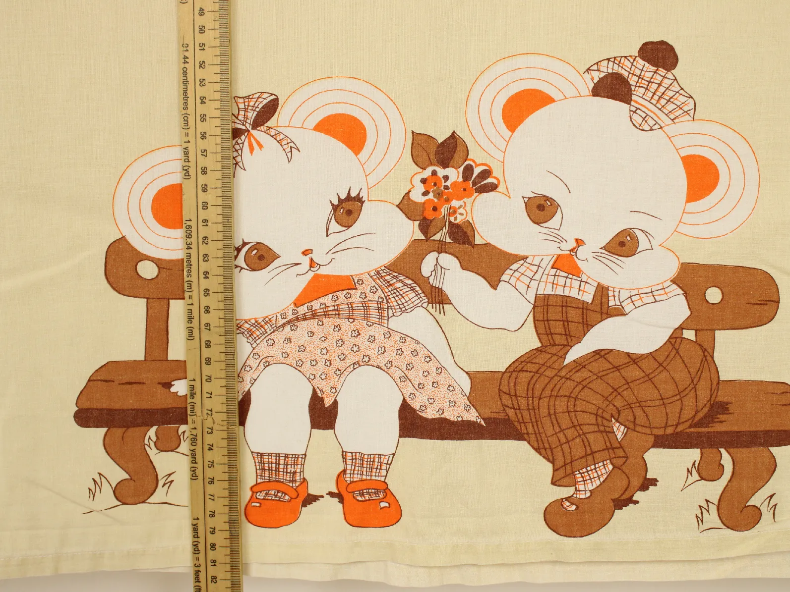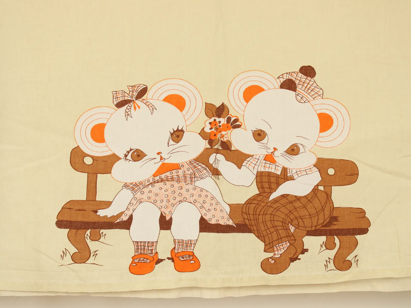 セピアカラーのレトロなねずみさん柄。