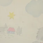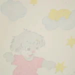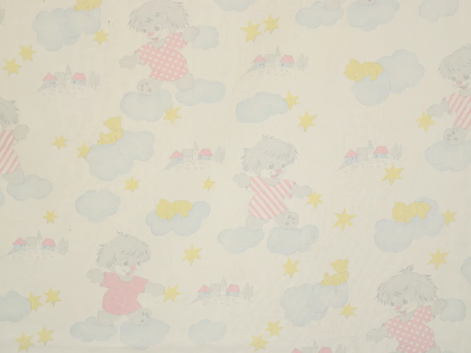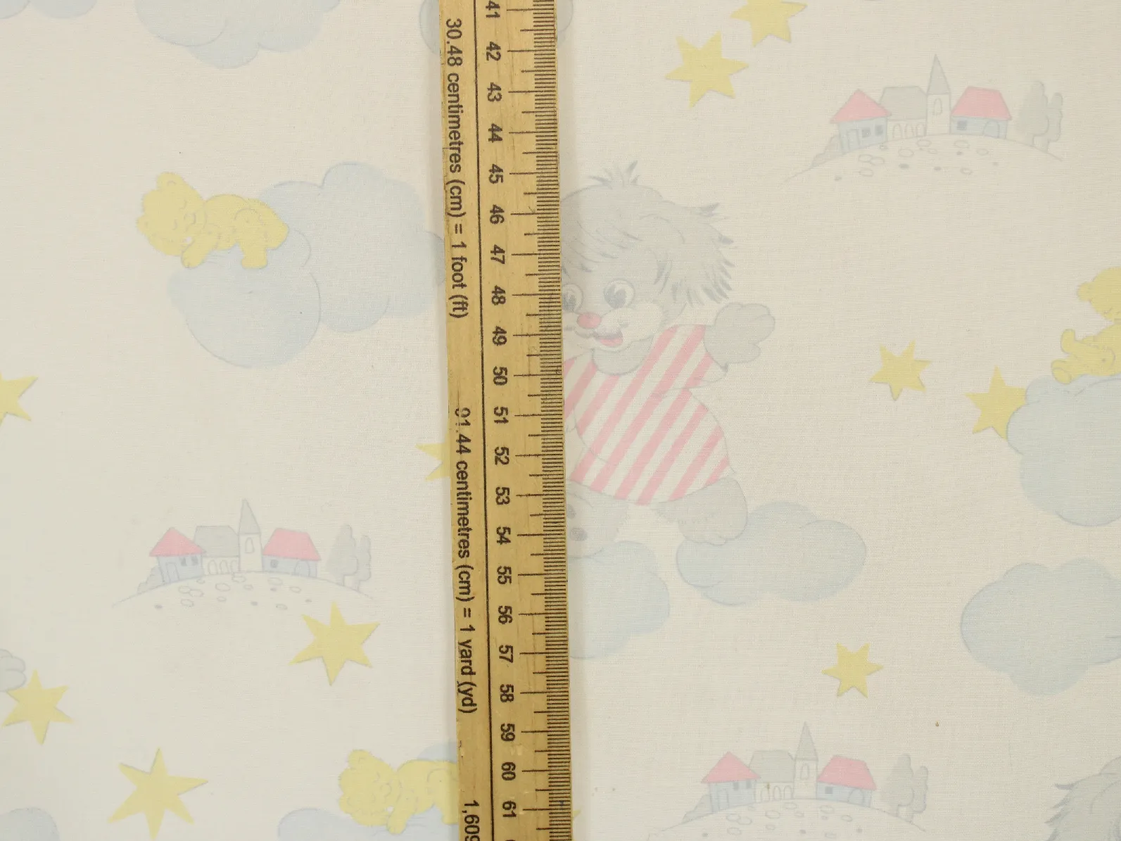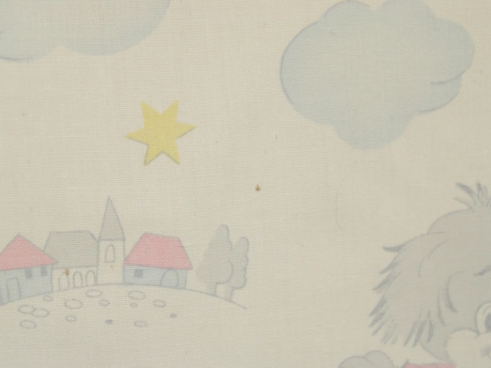 雲と星とパジャマを着たイヌの描かれたベビー柄。
