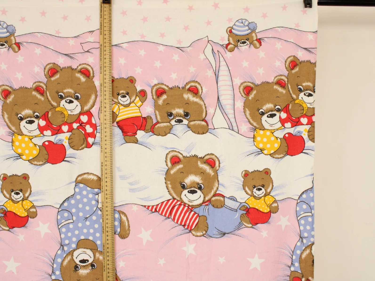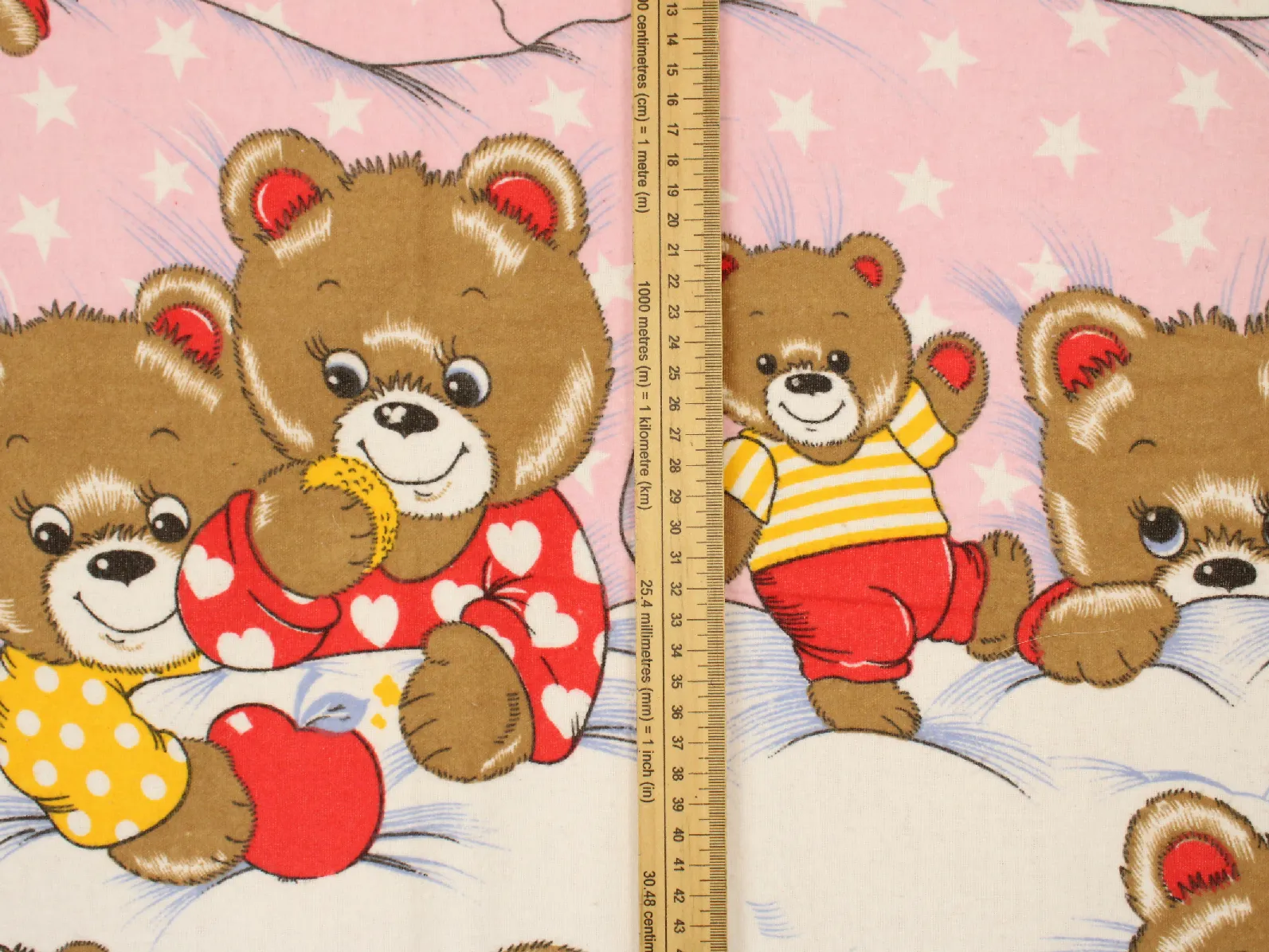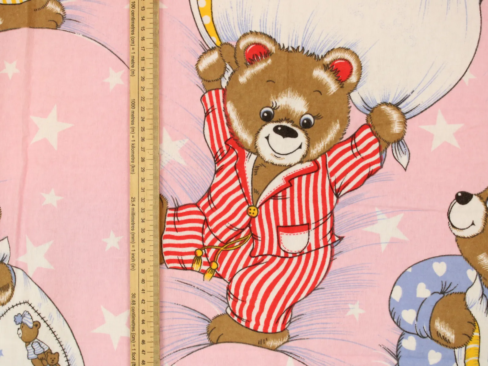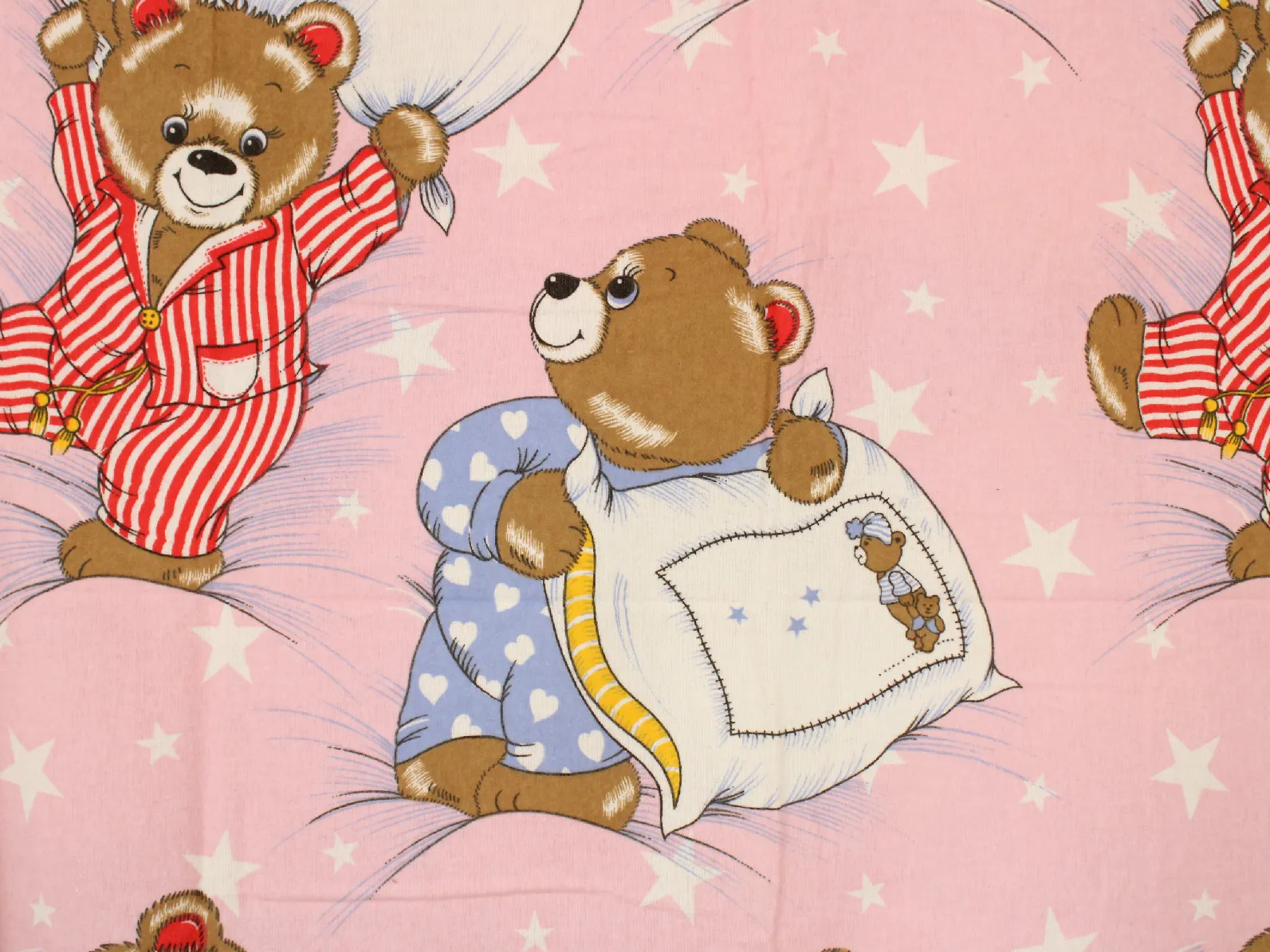 ストライプやハート柄のパジャマを着たクマさんたち。
