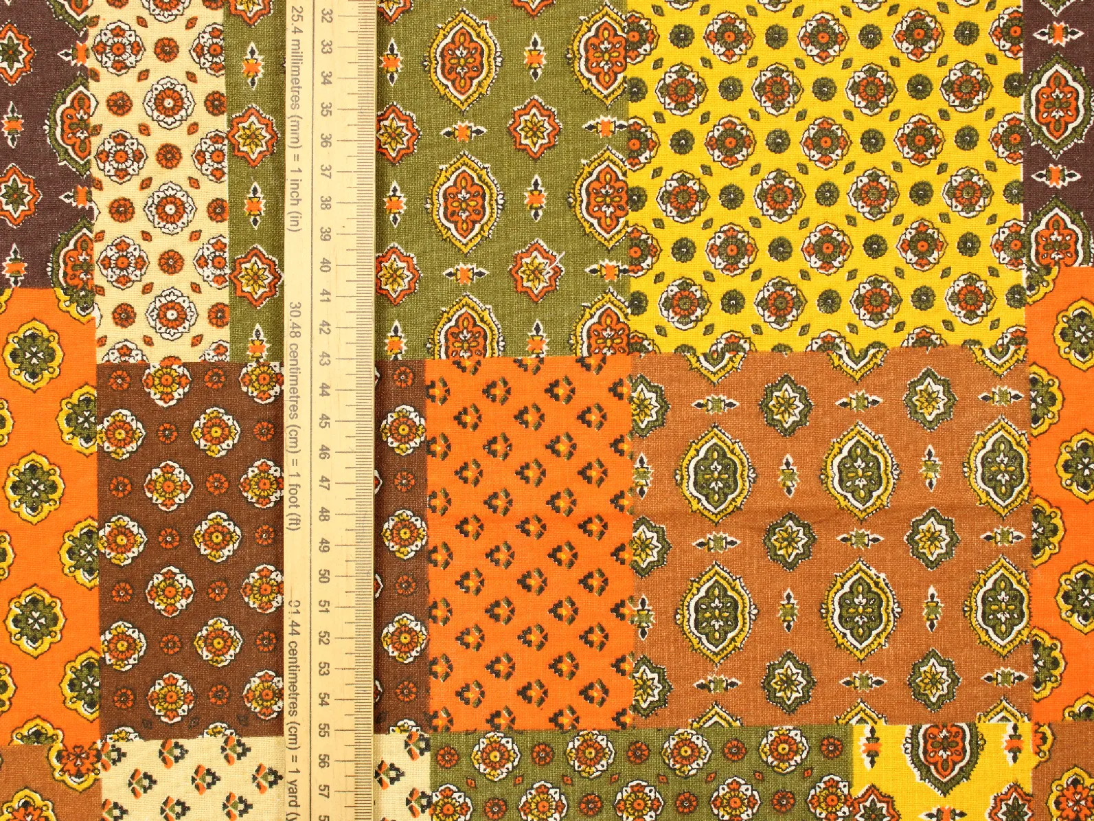 60*45 レトロ クラシック プロヴァンス柄 パッチワーク オレンジ ブラウン