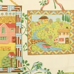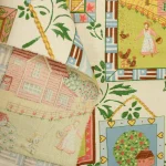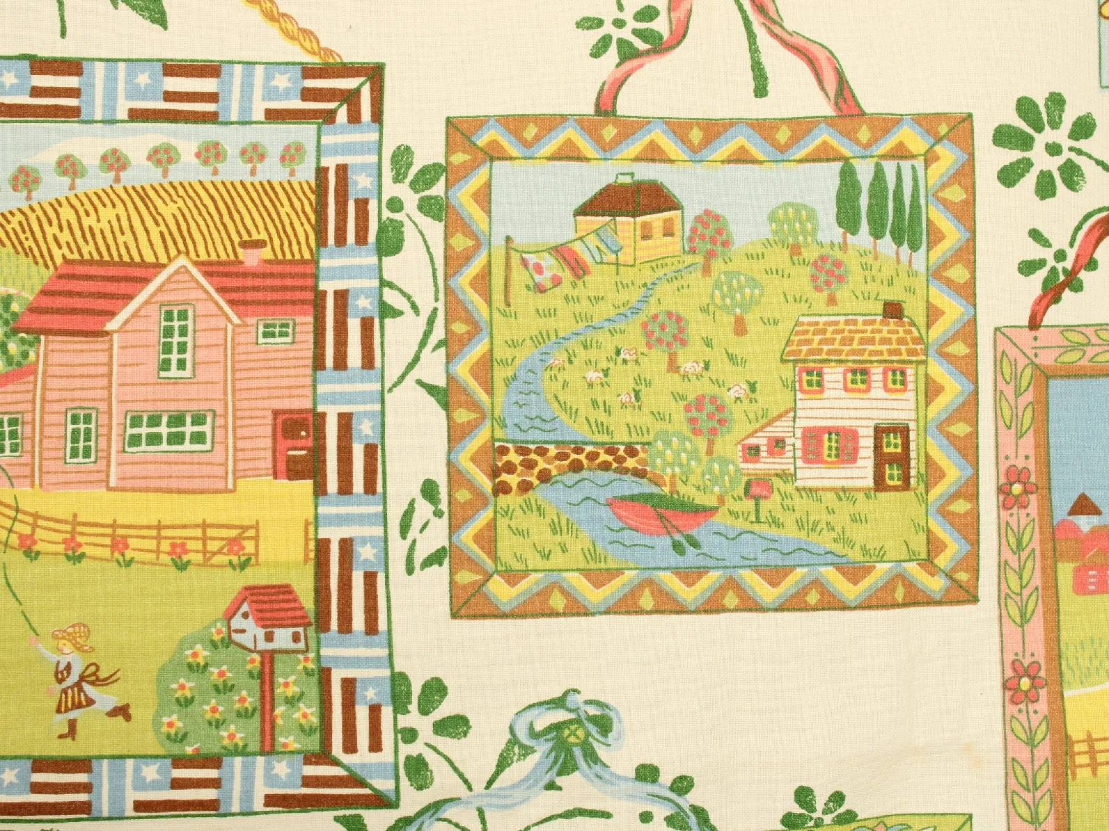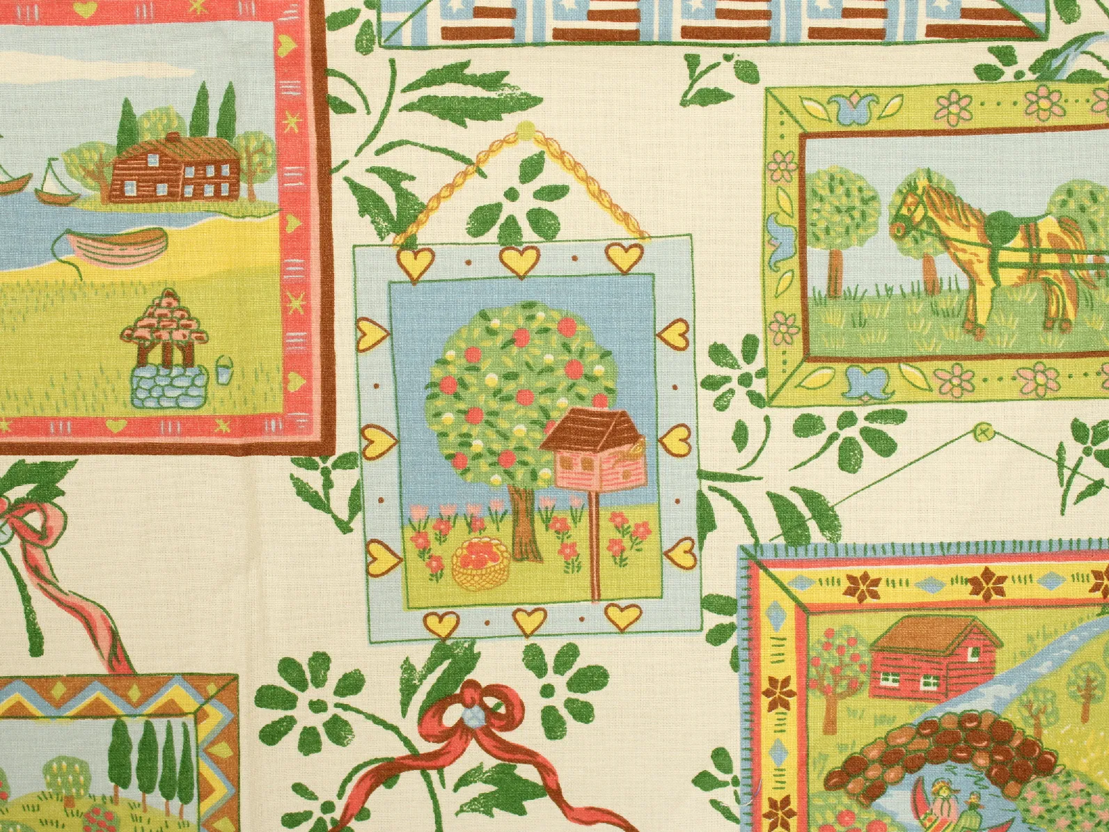 色とりどりの額縁におさまった、カントリーな風景柄。