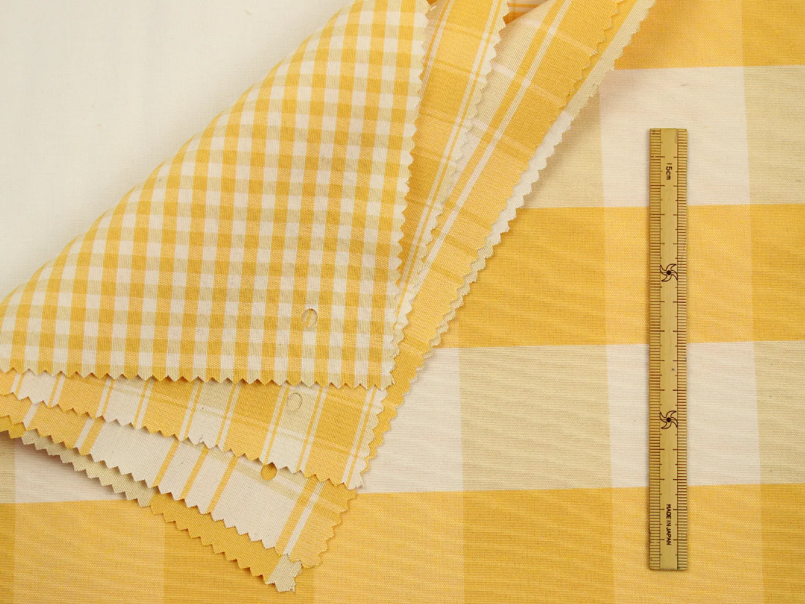 未使用の布地は水通し後に歪みや縮が出る場合があります。
