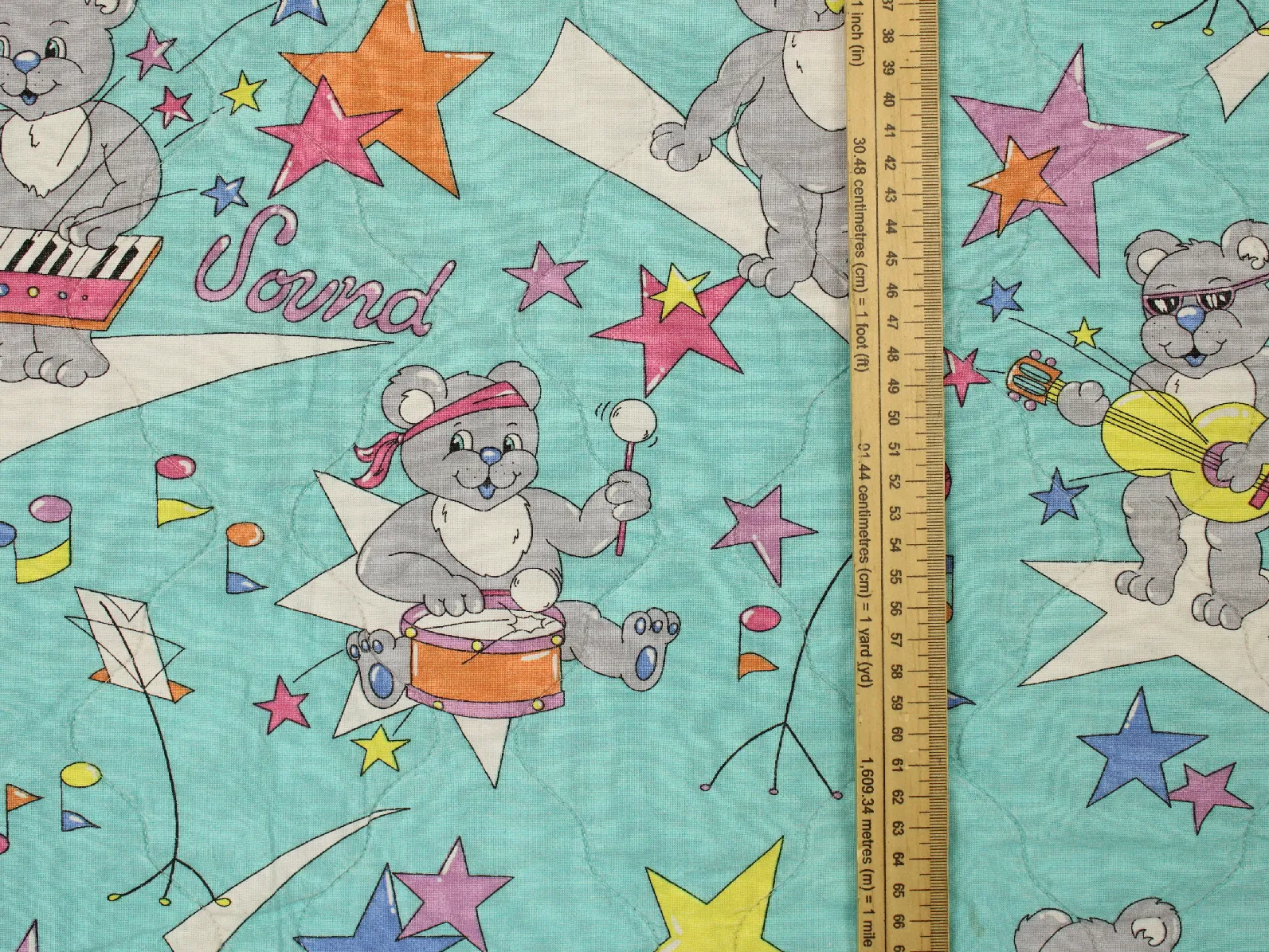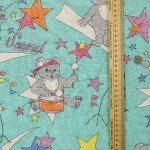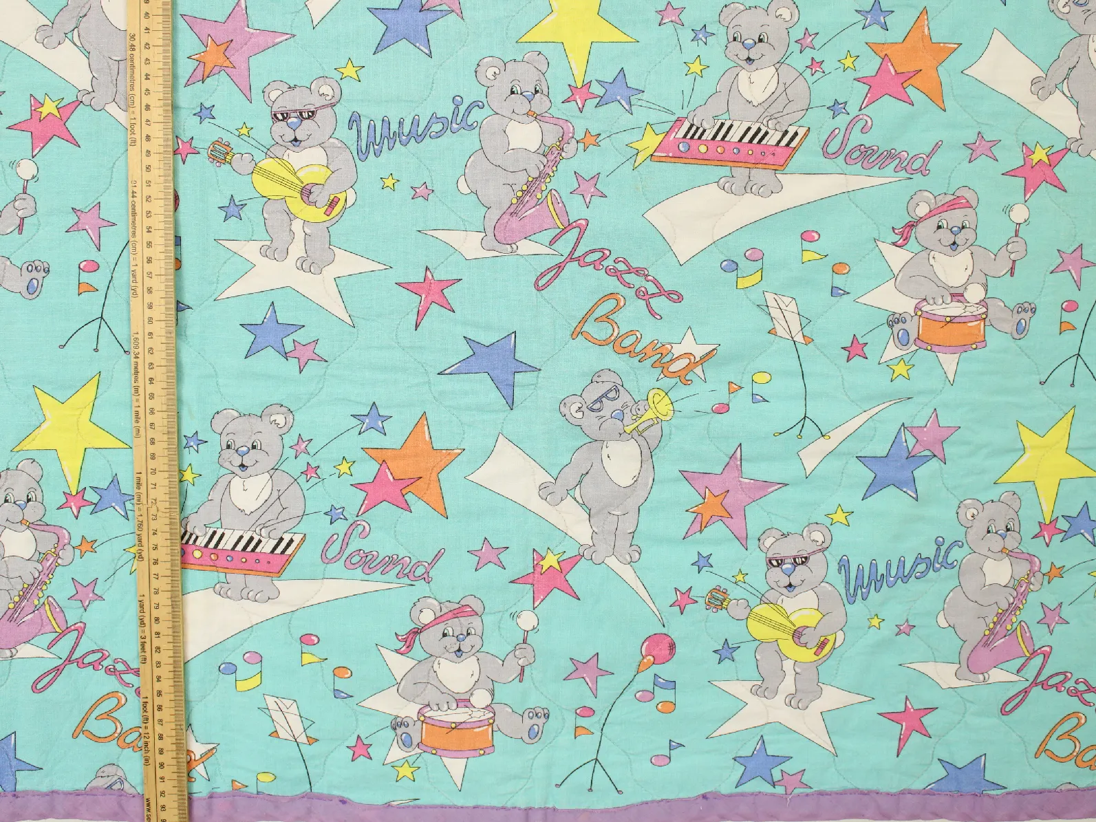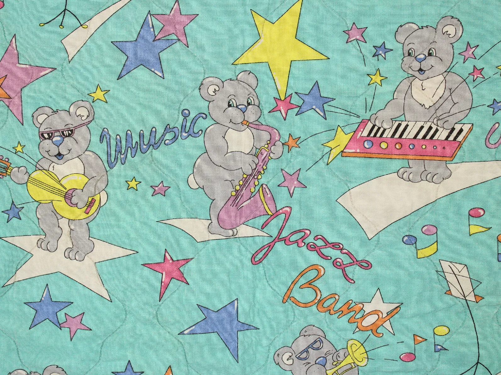 明るいグリーン地に、演奏するネズミキャラクター柄。