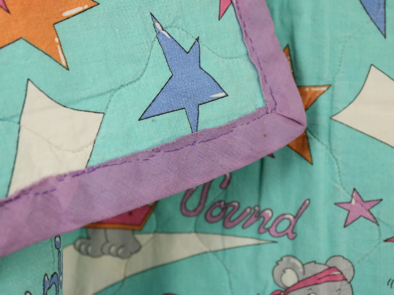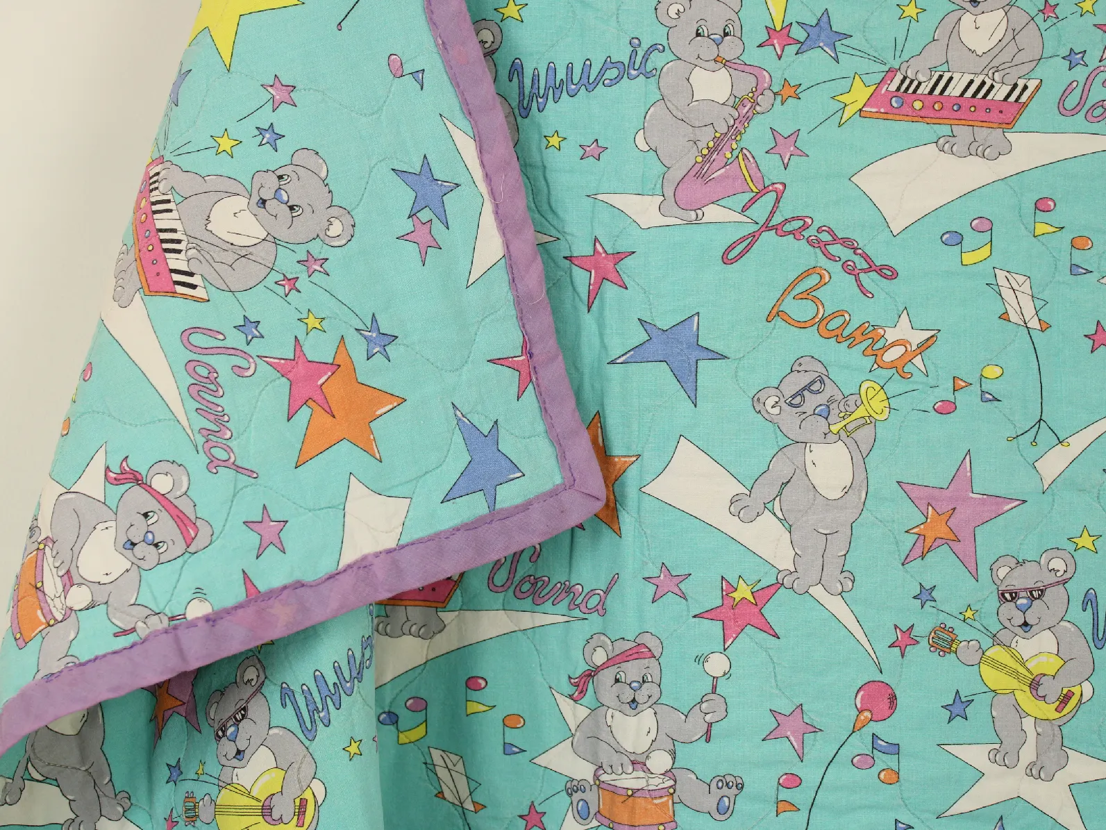 レトロなアニマル柄のキルト地ベッドマット、またはベッドカバーです。