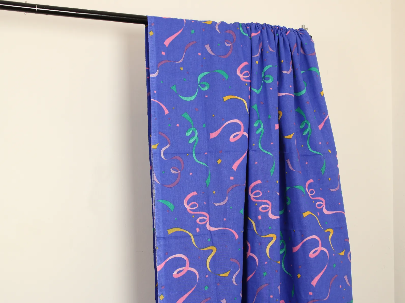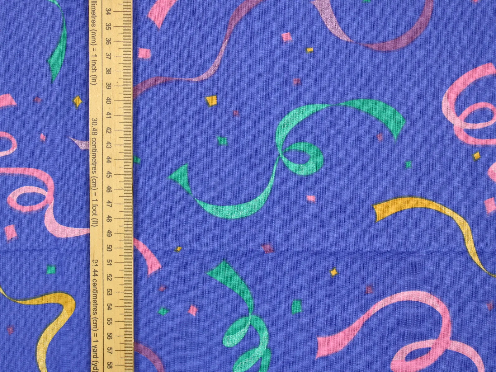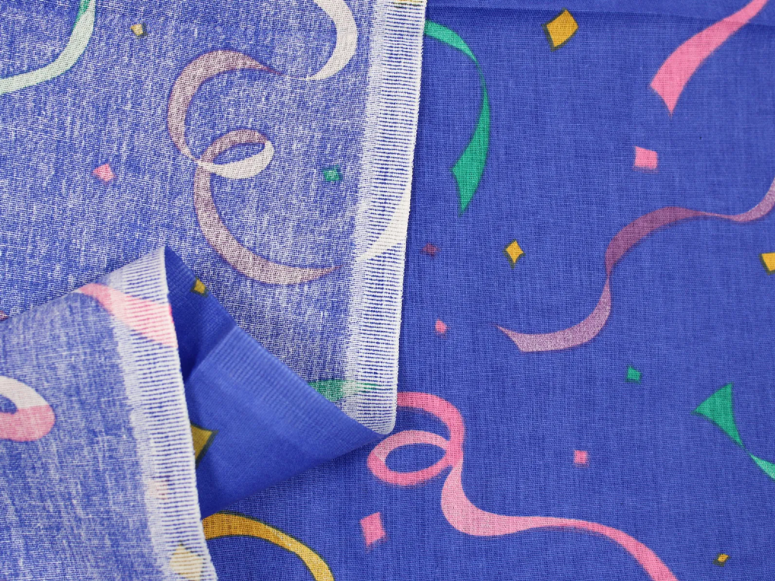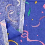 青紫地にカラフルなリボン&コンフェッティ柄。