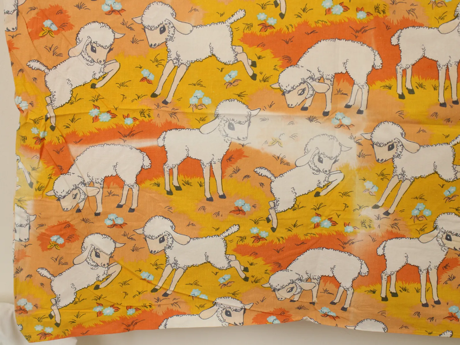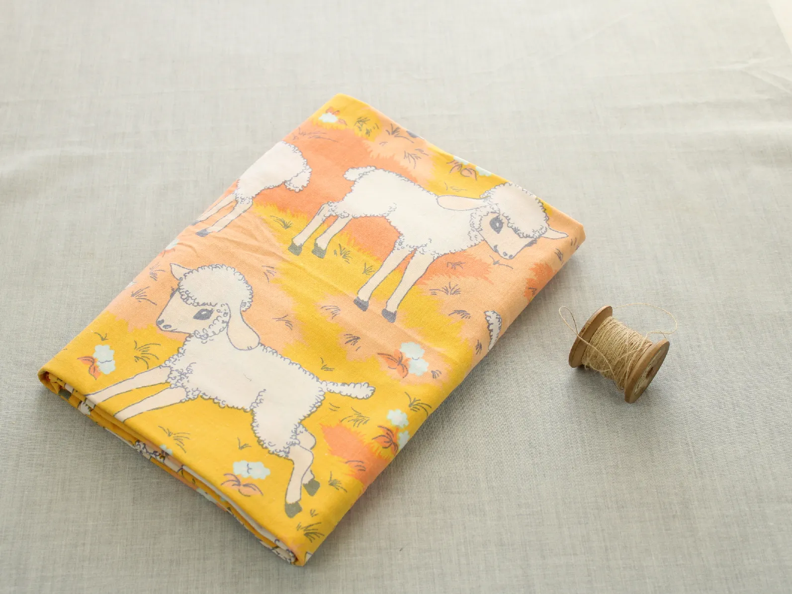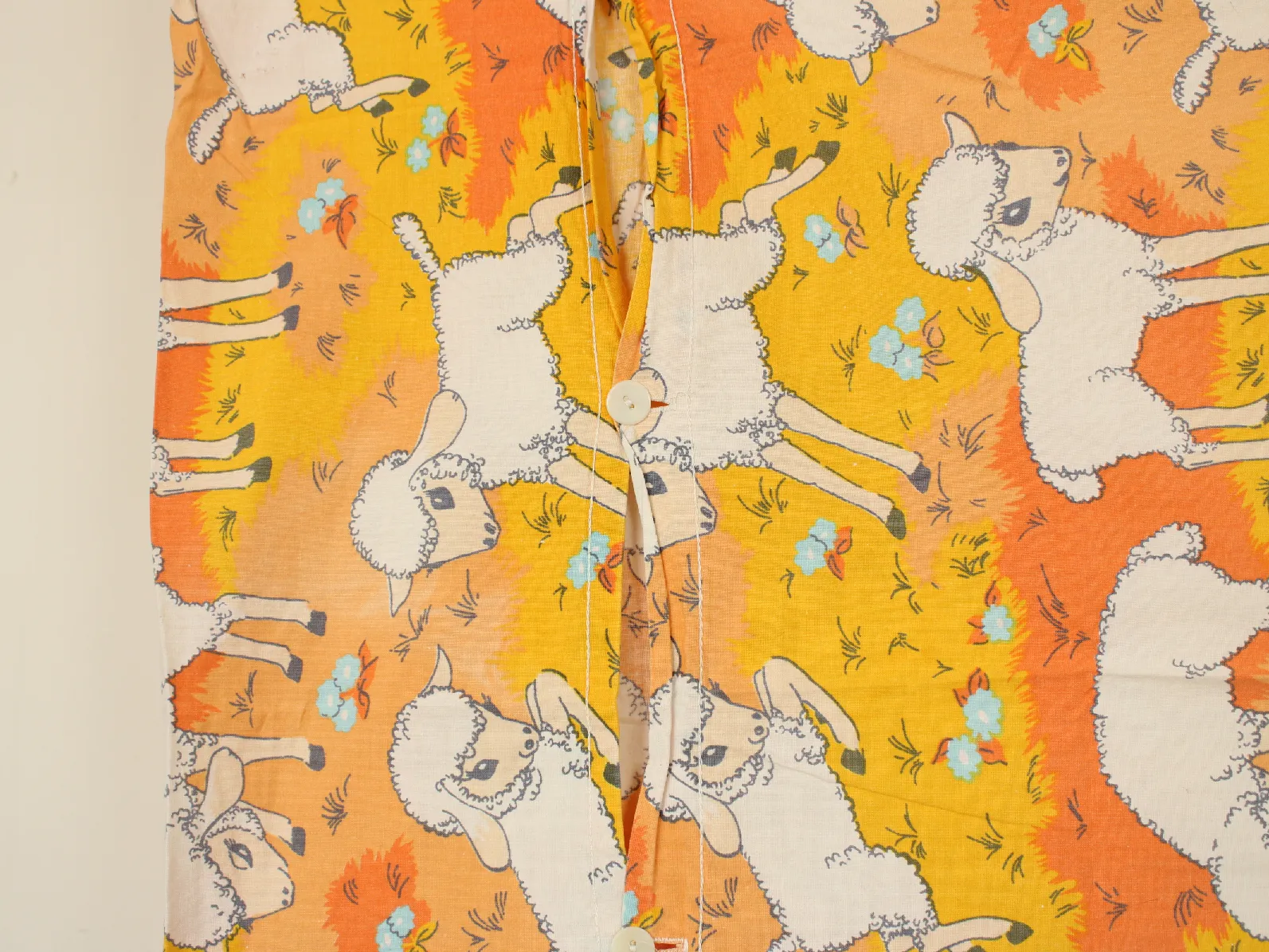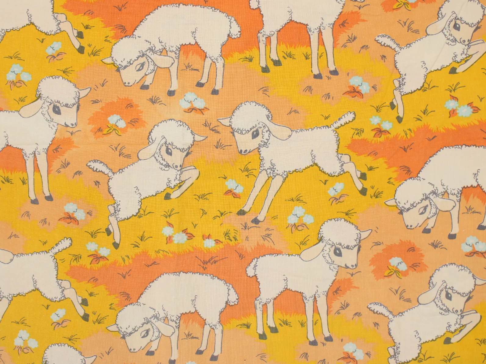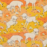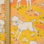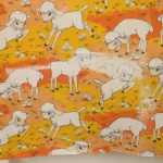 橙と黄色のあたたかな色合いのレトロなヒツジ柄。