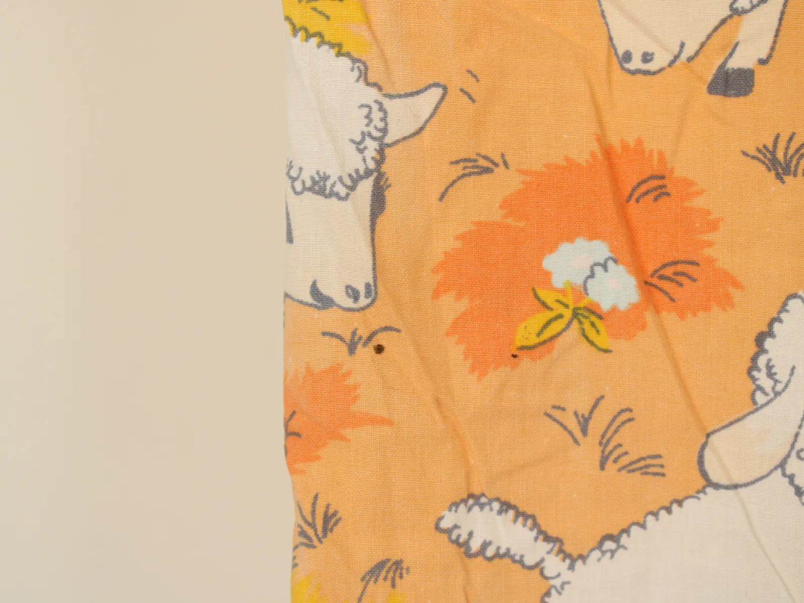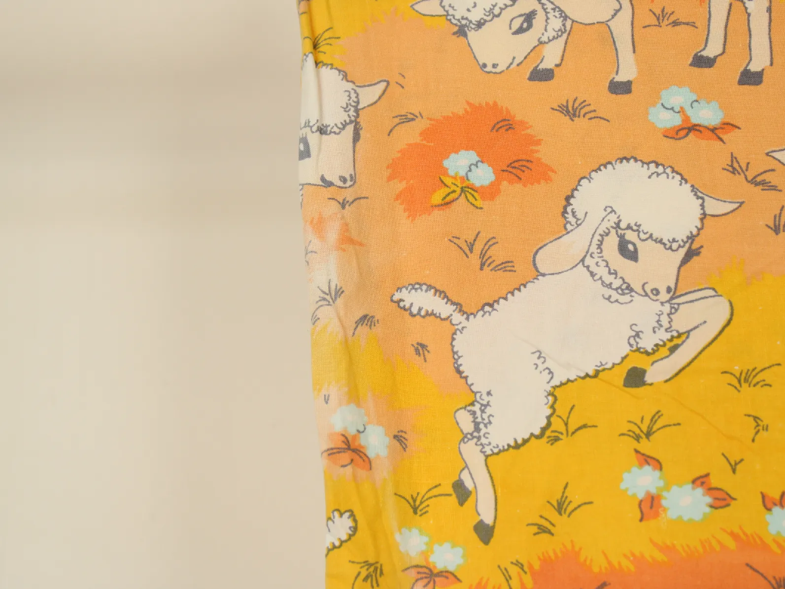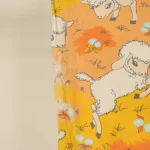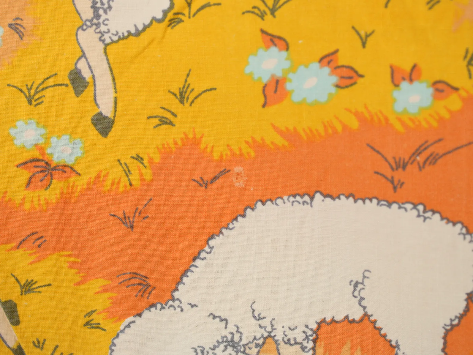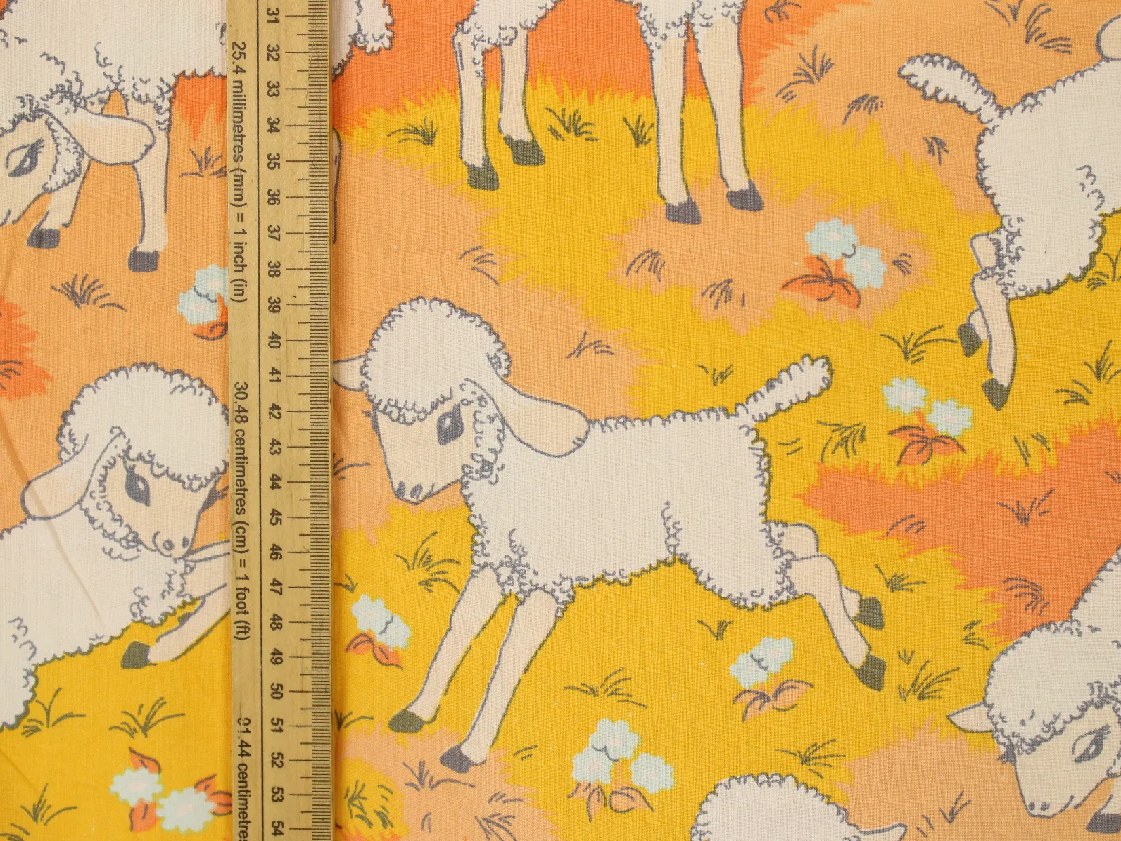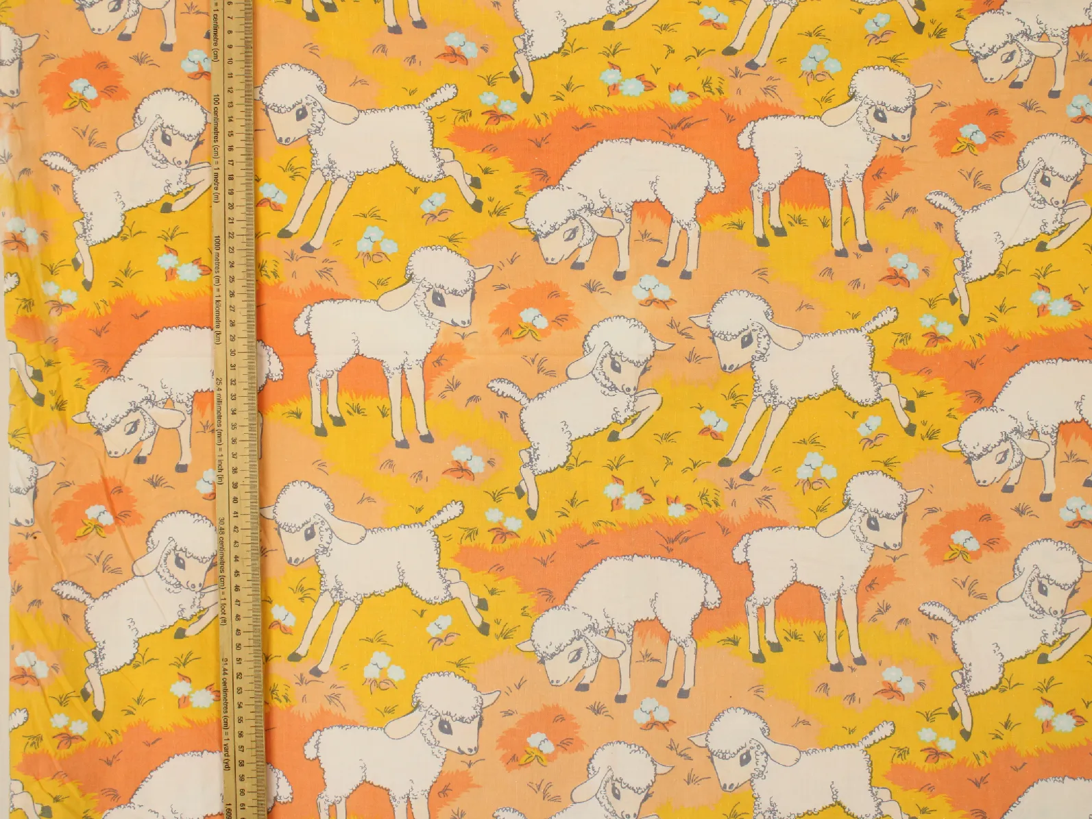 橙と黄色のあたたかな色合いのレトロなヒツジ柄。