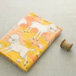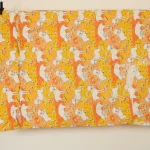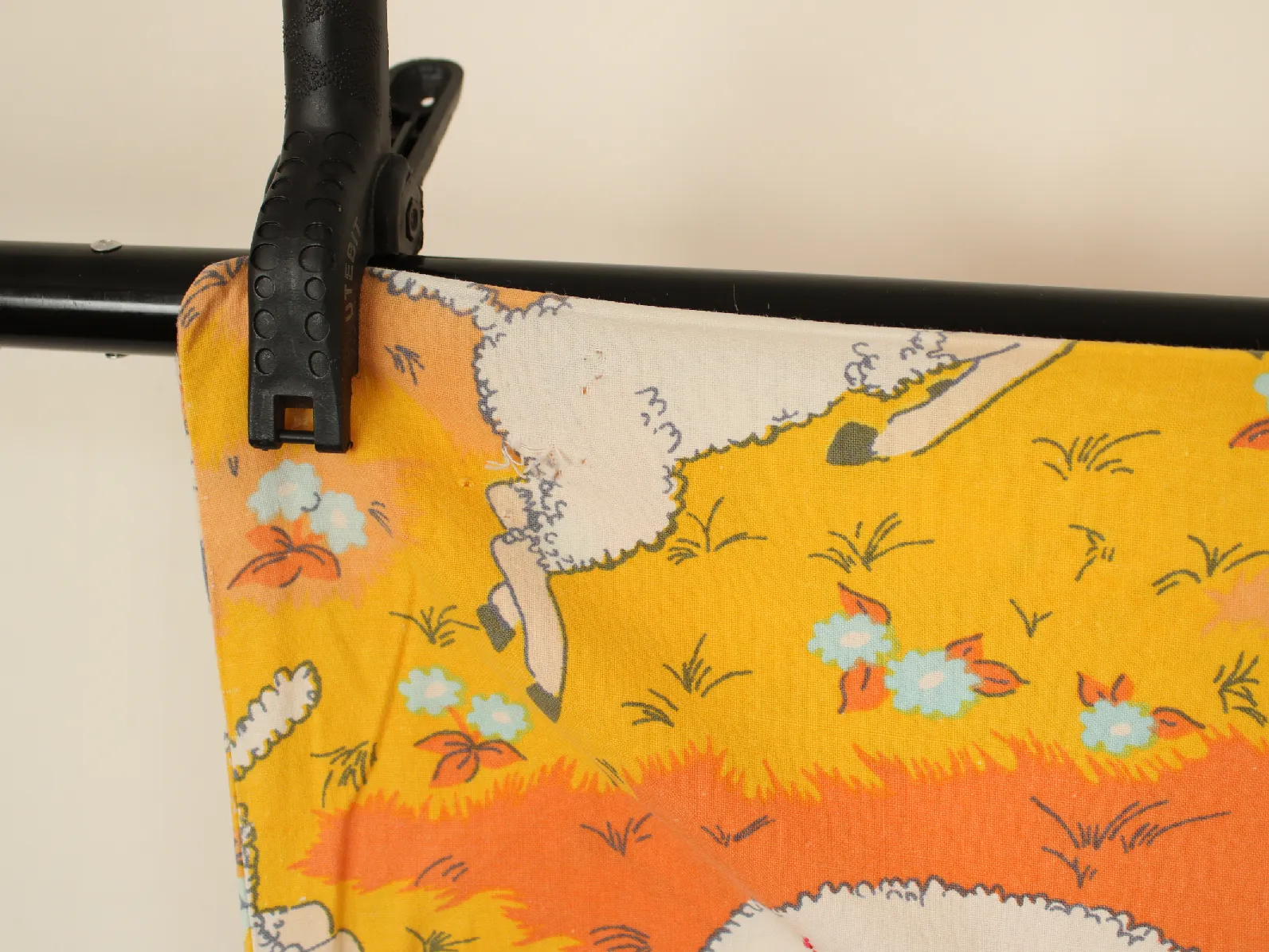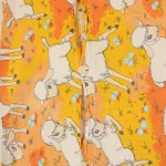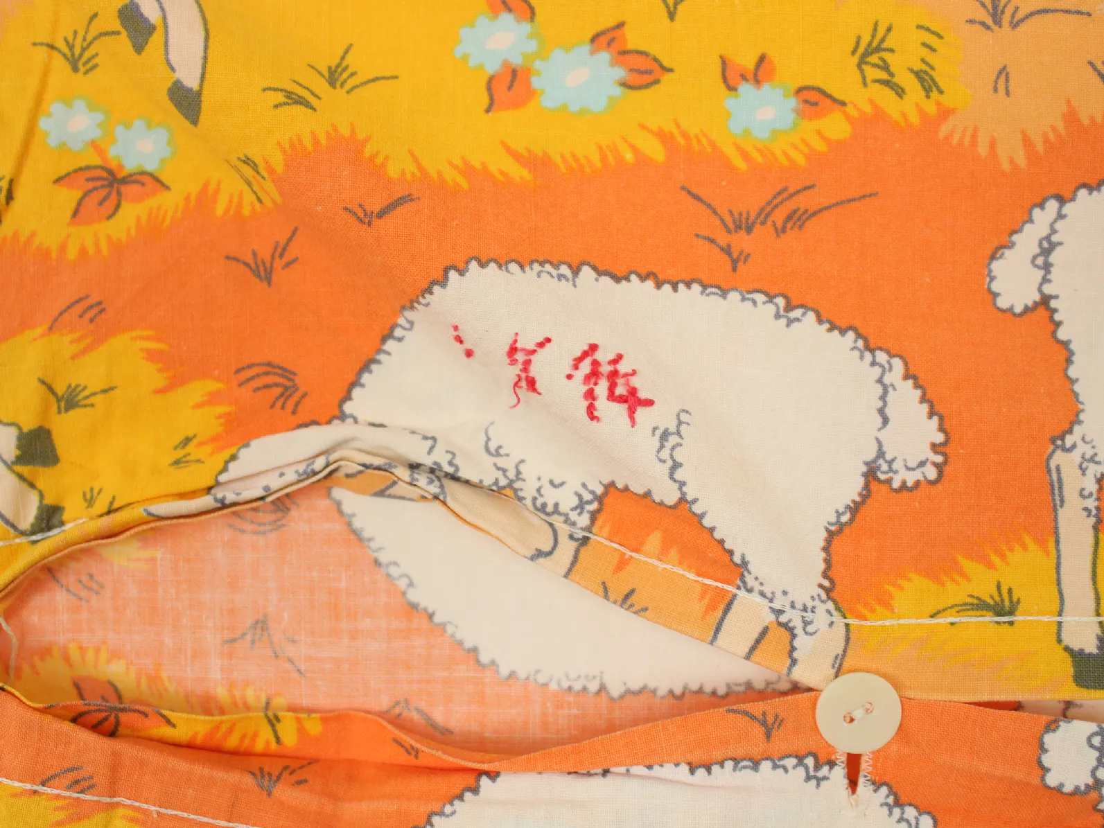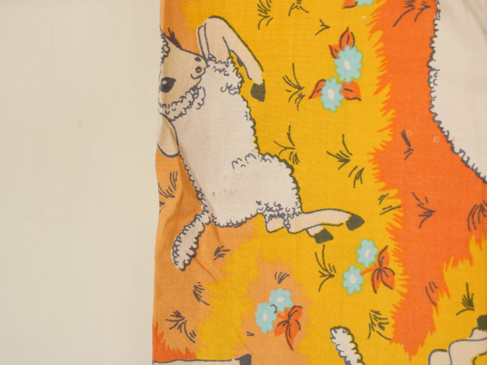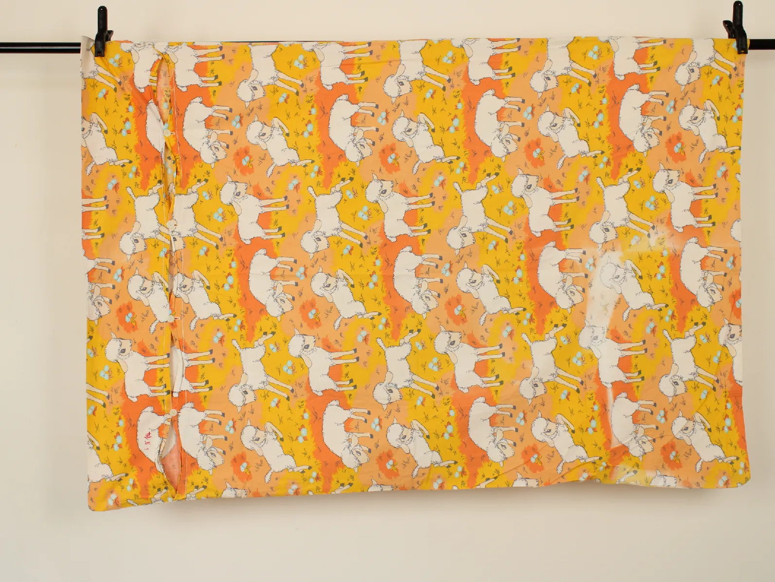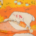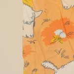 橙と黄色のあたたかな色合いのレトロなヒツジ柄。