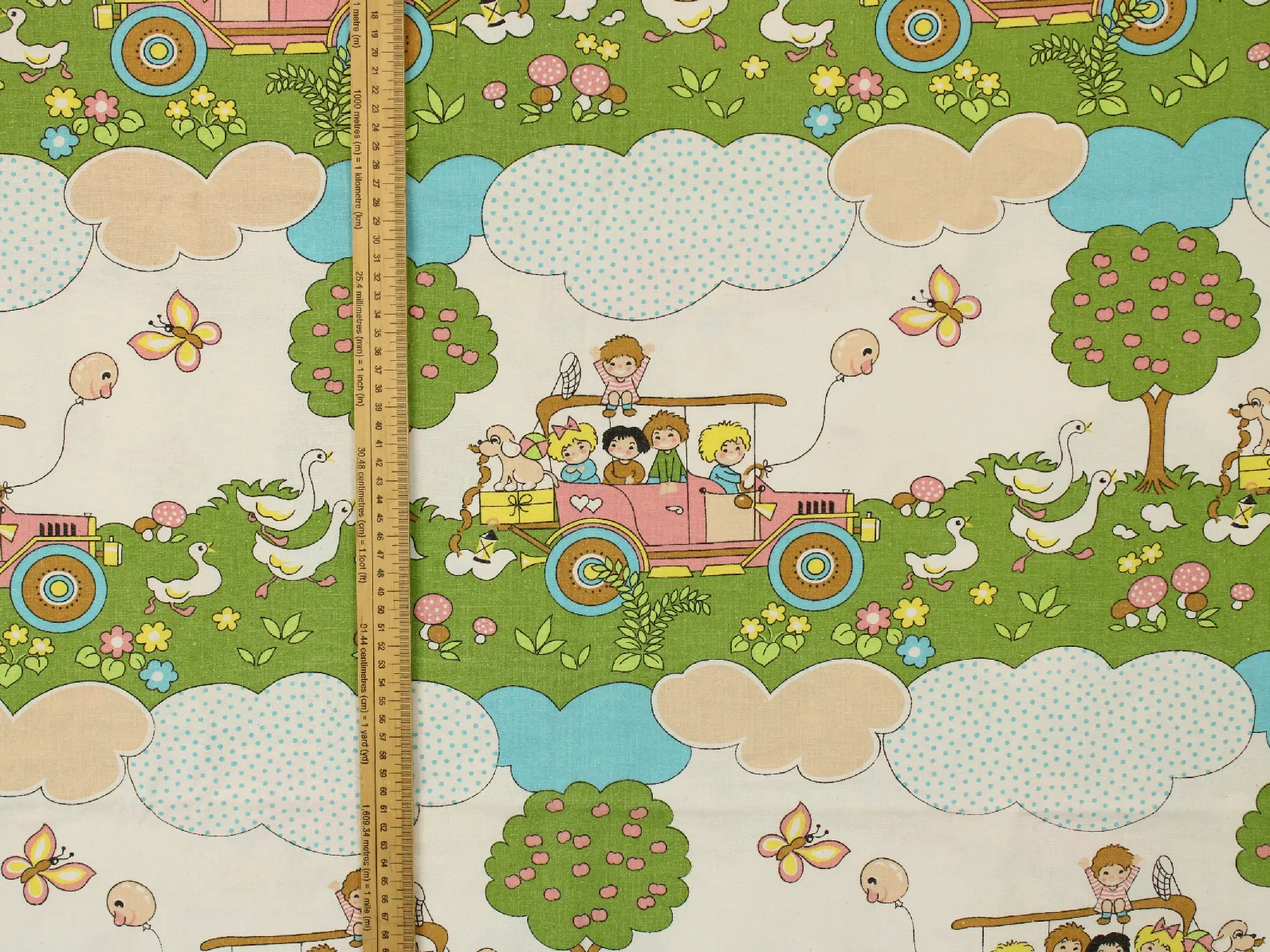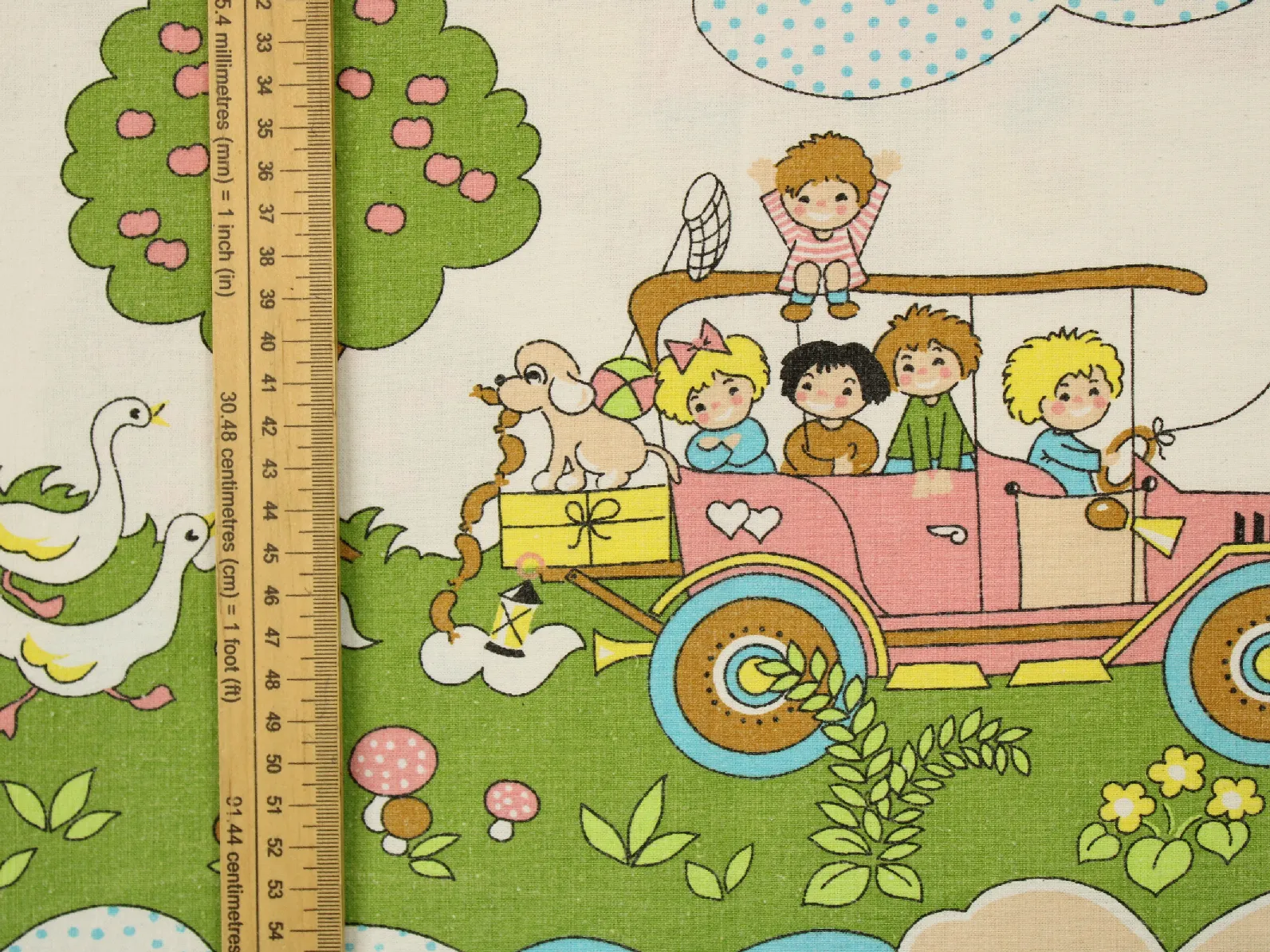 ピンクの車に乗った笑顔のかわいい子供たち。