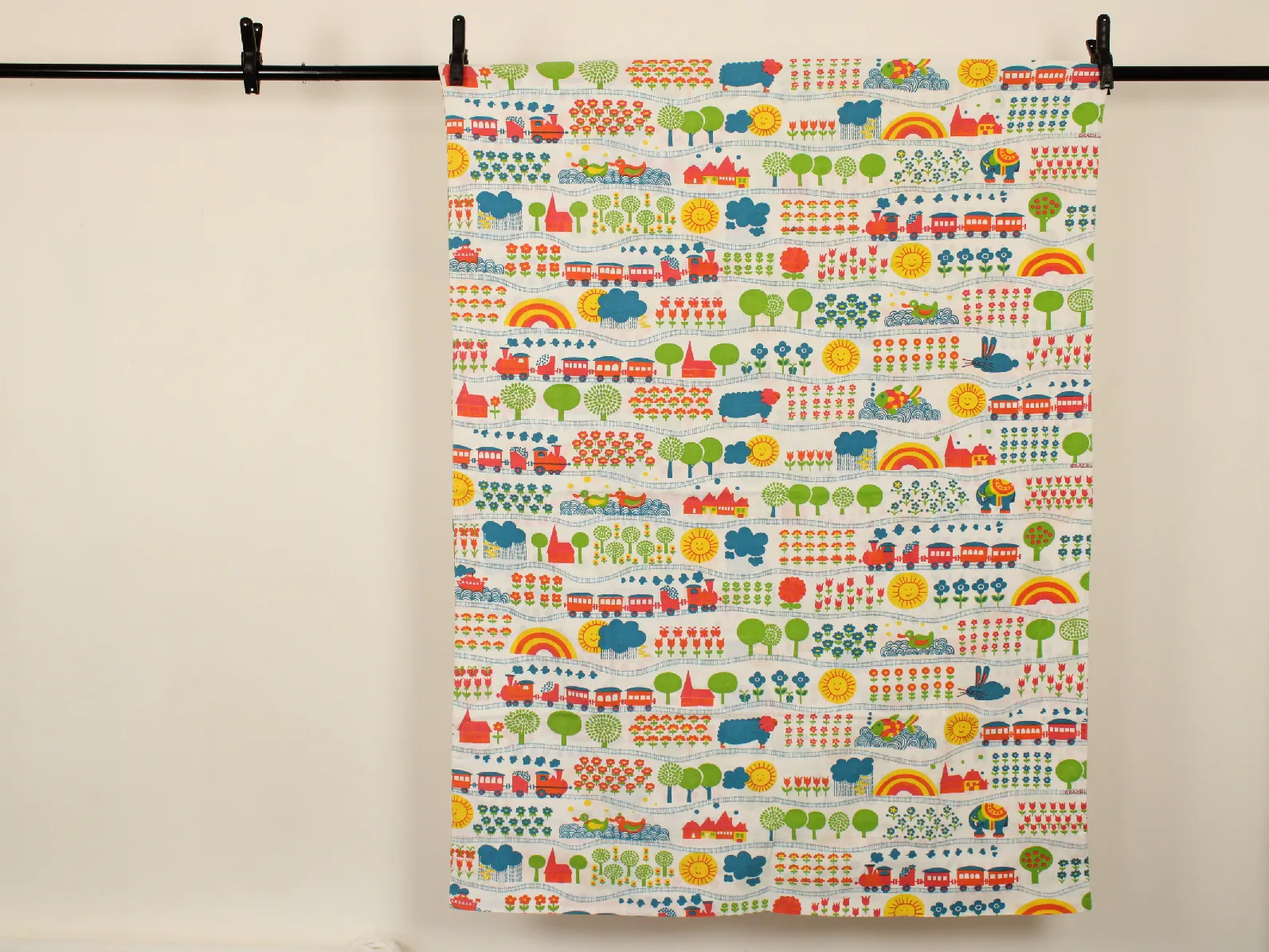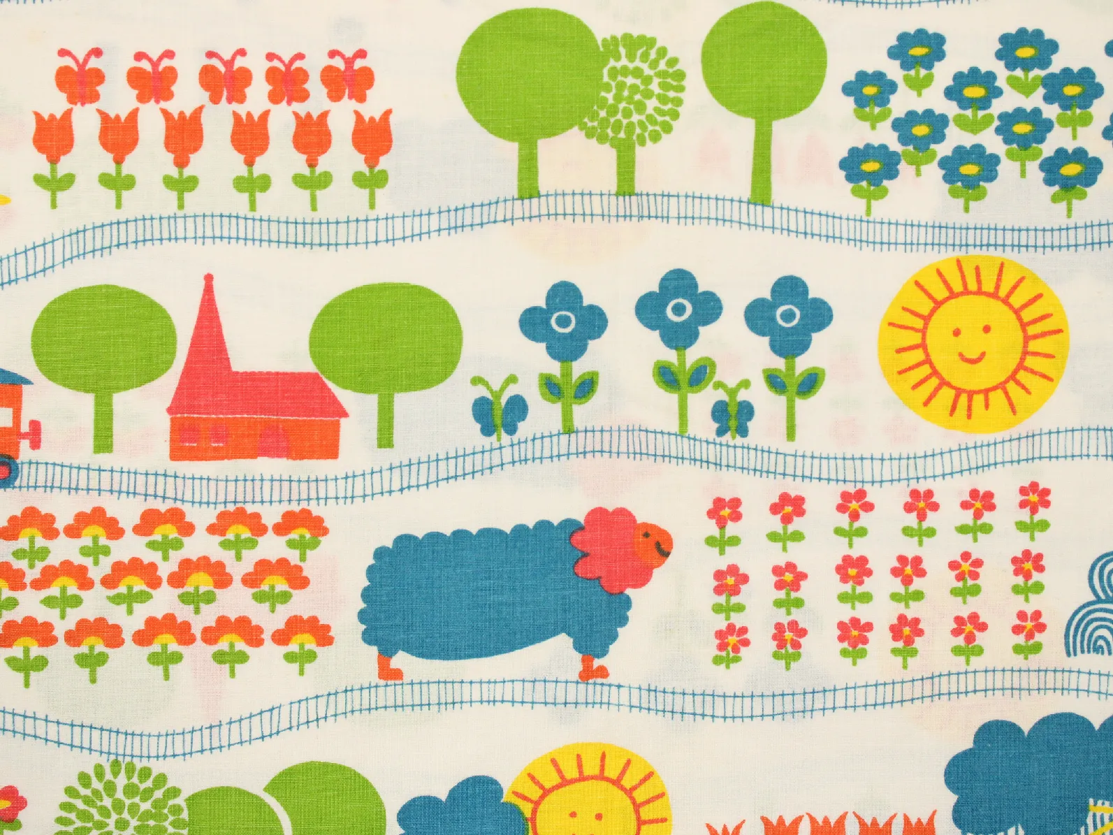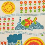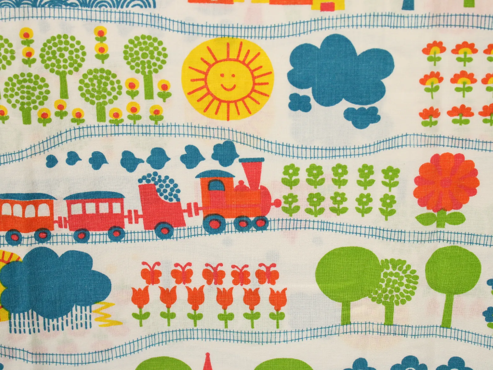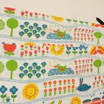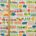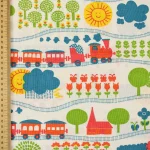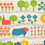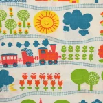 花や動物、野山の風景と機関車の絵柄です。