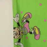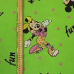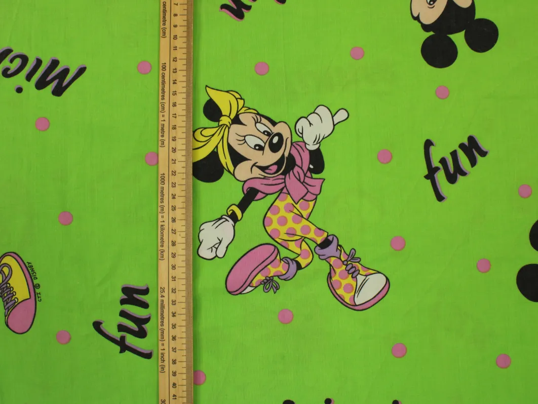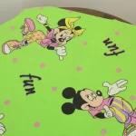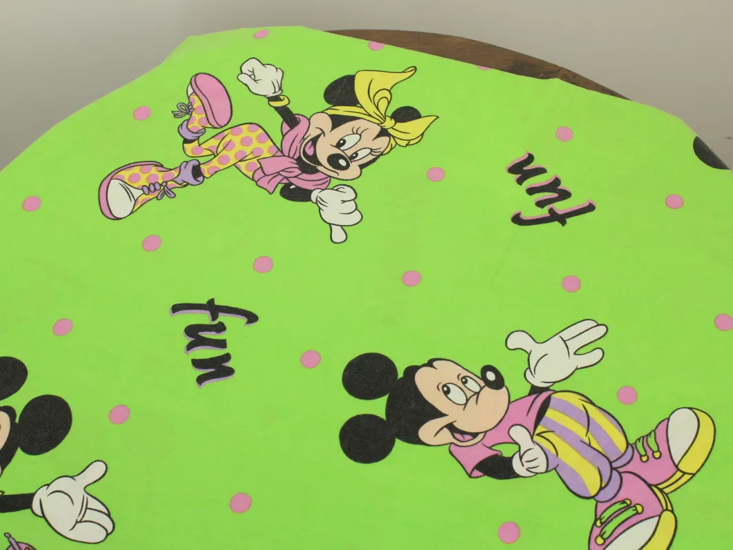 ファンキーなミッキー&ミニーのFUNロゴ柄。緑バージョン。中古シーツ解体生地です。