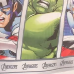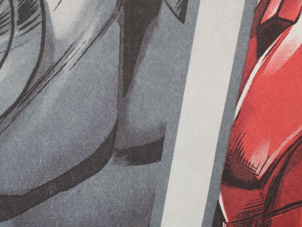 グレー地に迫力あるアベンジャーズのパネル柄。