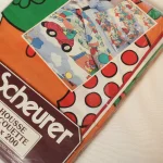 白地にレトロな絵柄のお布団カバー&ピローカバー2枚のベッドセットです。