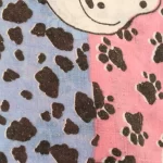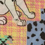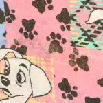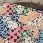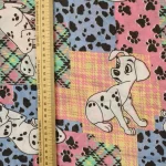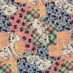 101匹わんちゃん。ピンクと緑のチェック模様とぶちや足跡模様がかわいいデザイン。