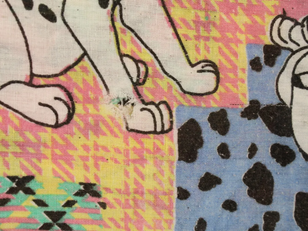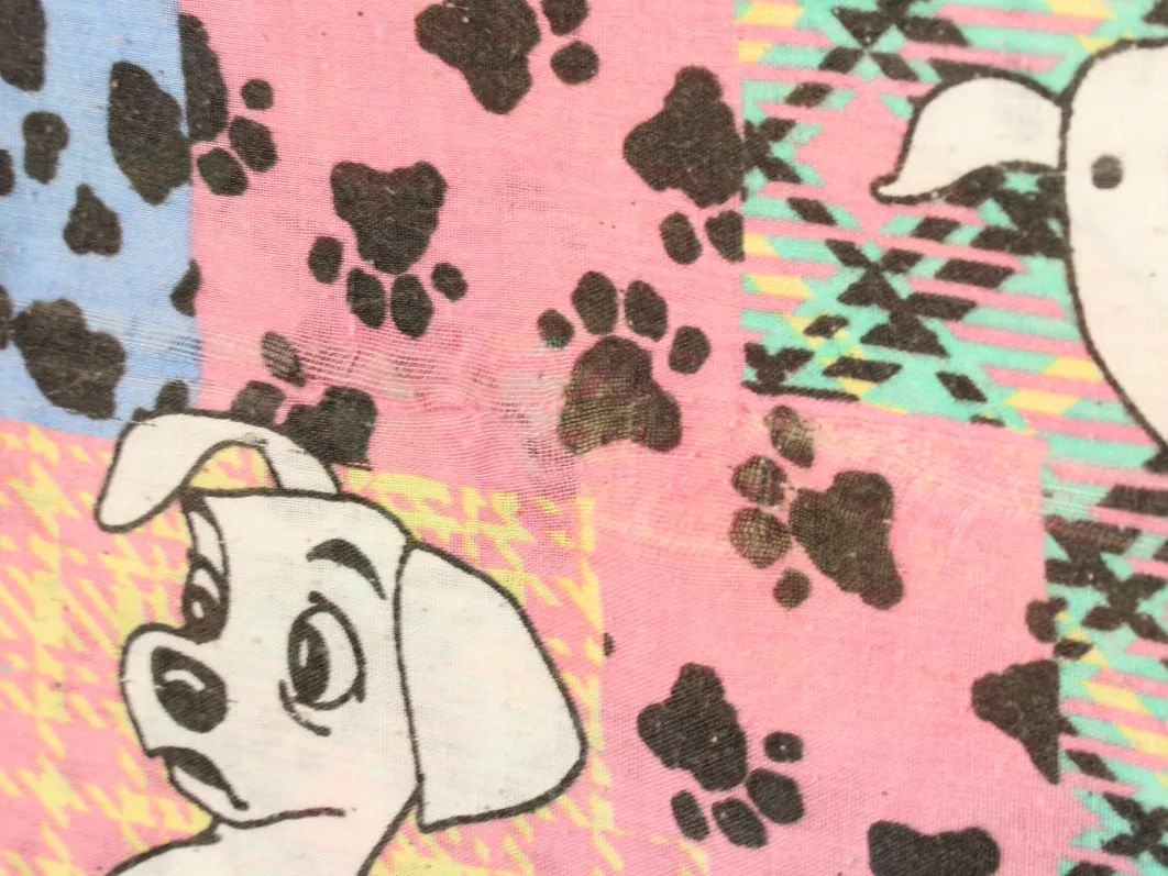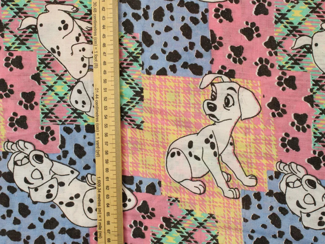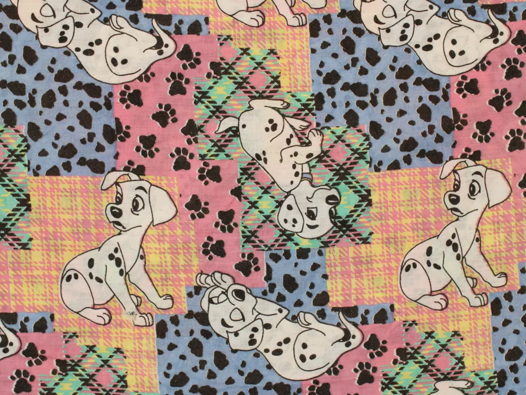 ディズニー、101匹わんちゃん、キャラクタービンテージシーツ。解体生地。
