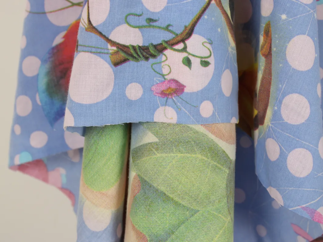 水色地にドット模様のティンクと妖精たち。