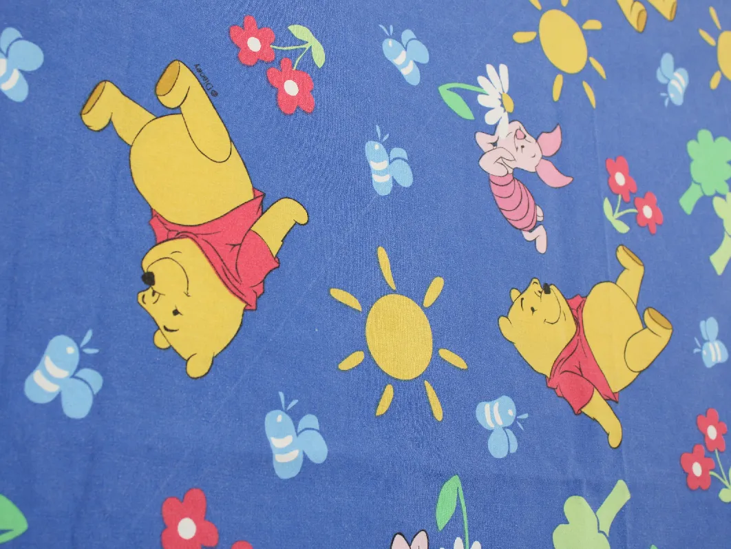 ディズニー、くまのプーさん、キャラクタービンテージシーツ。解体生地。