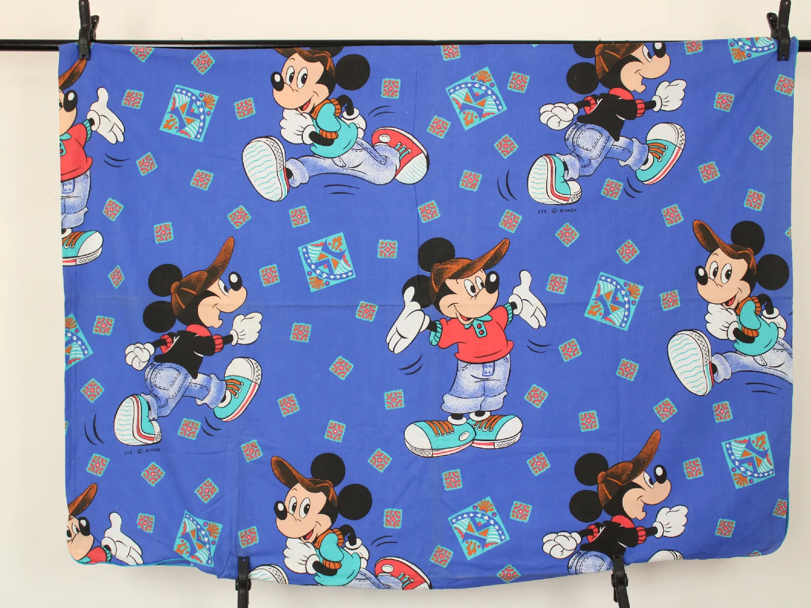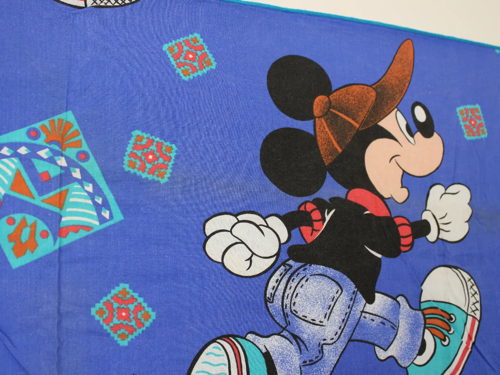 ディズニー、ミッキー、キャラクタービンテージシーツ。解体生地。