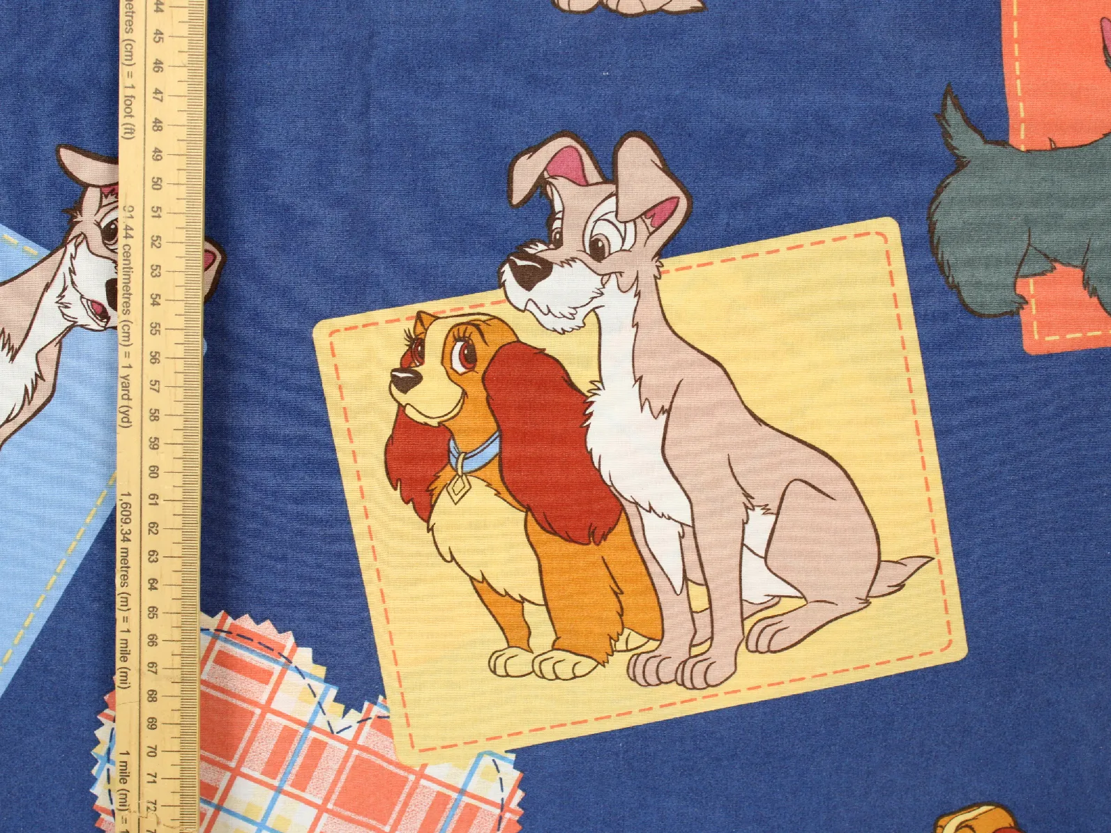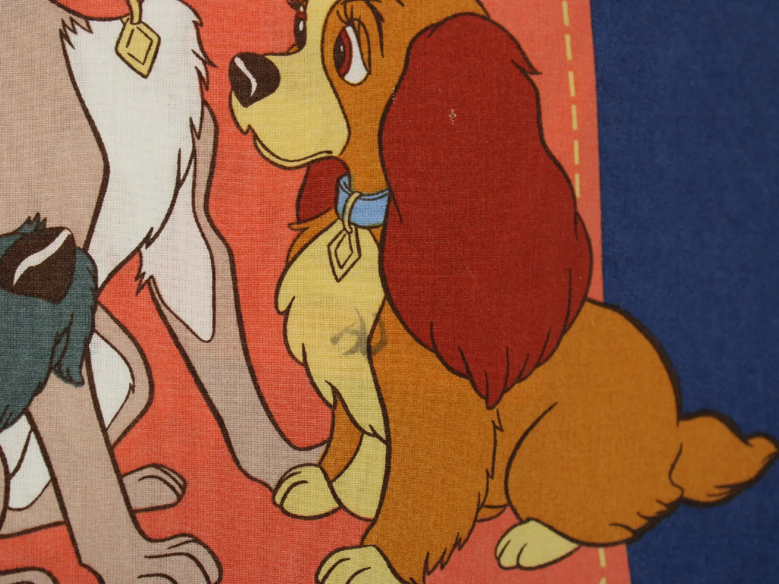 ディズニー、わんわん物語、キャラクタービンテージシーツ。解体生地。