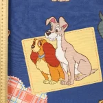 青地にワッペン柄のレディ、トランプと仲間のわんちゃんたち。