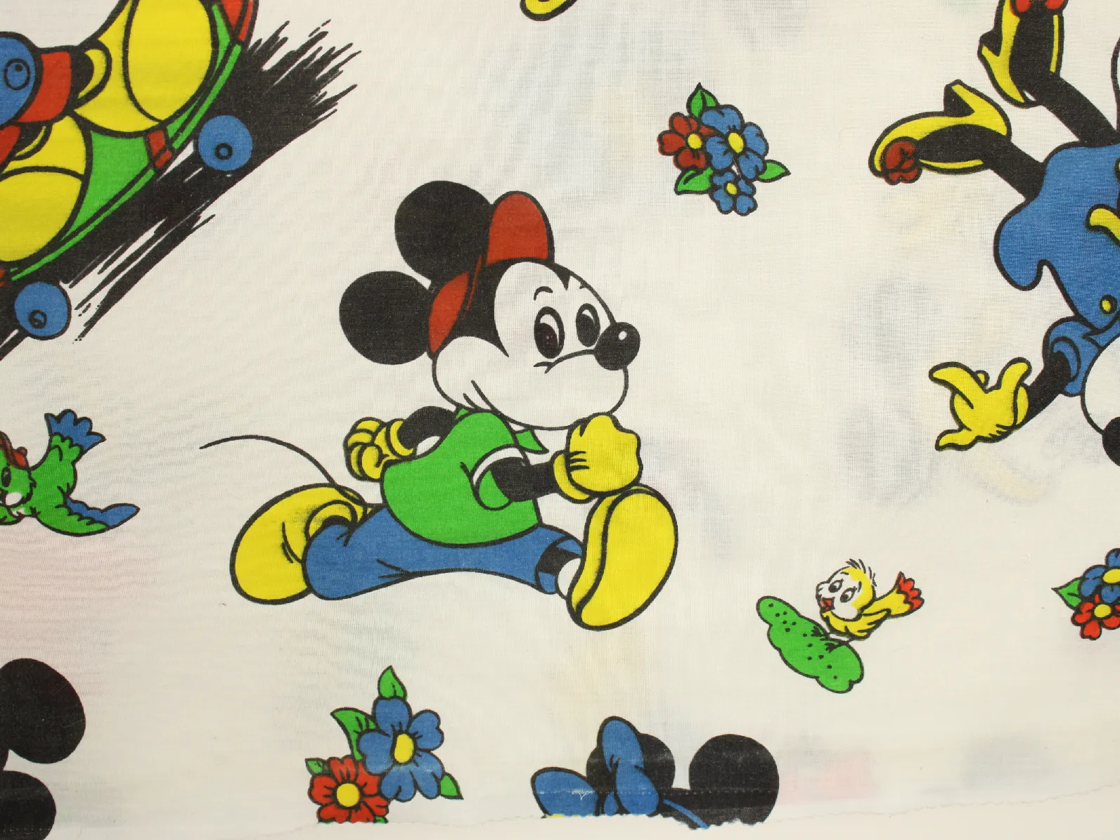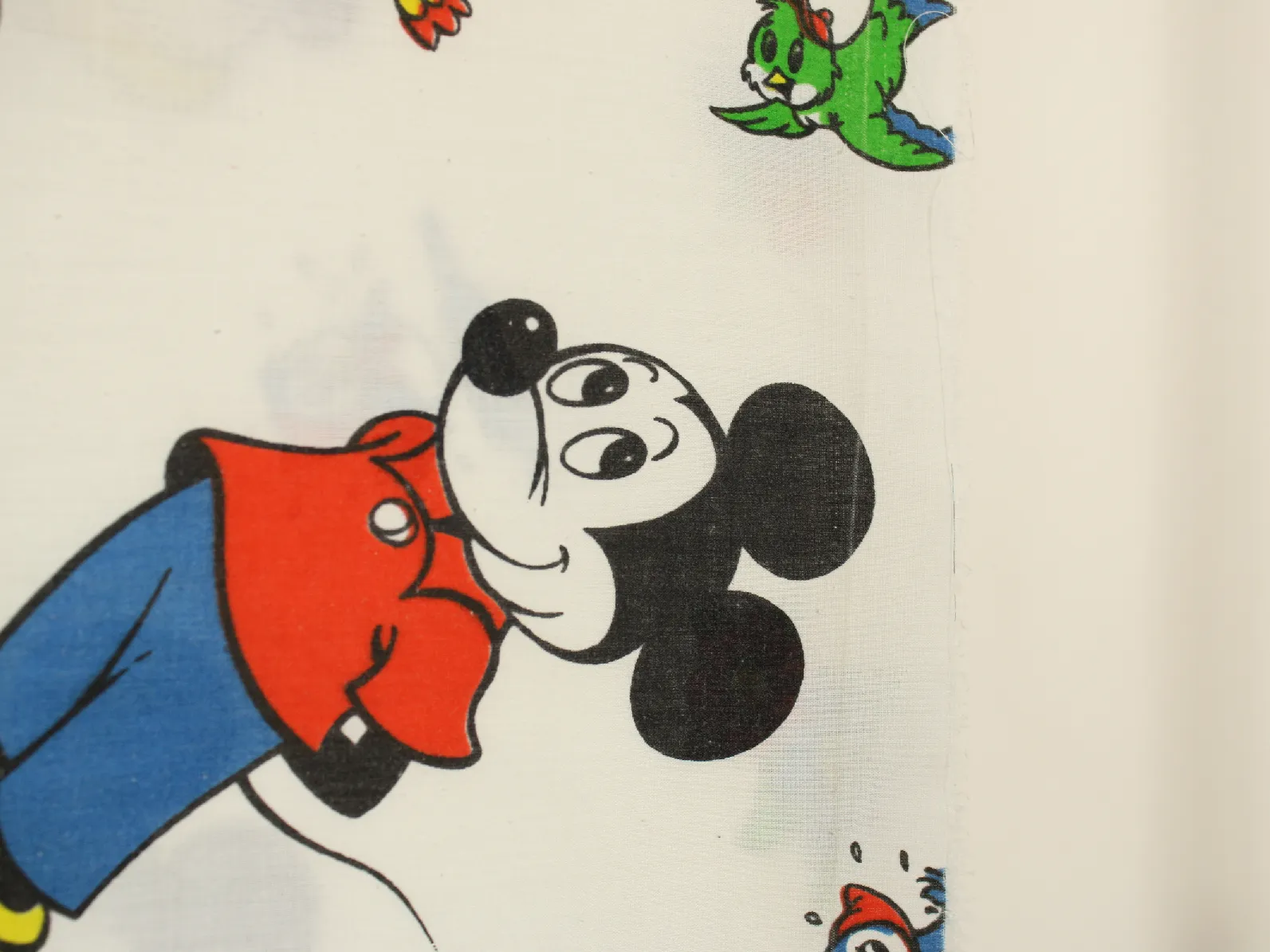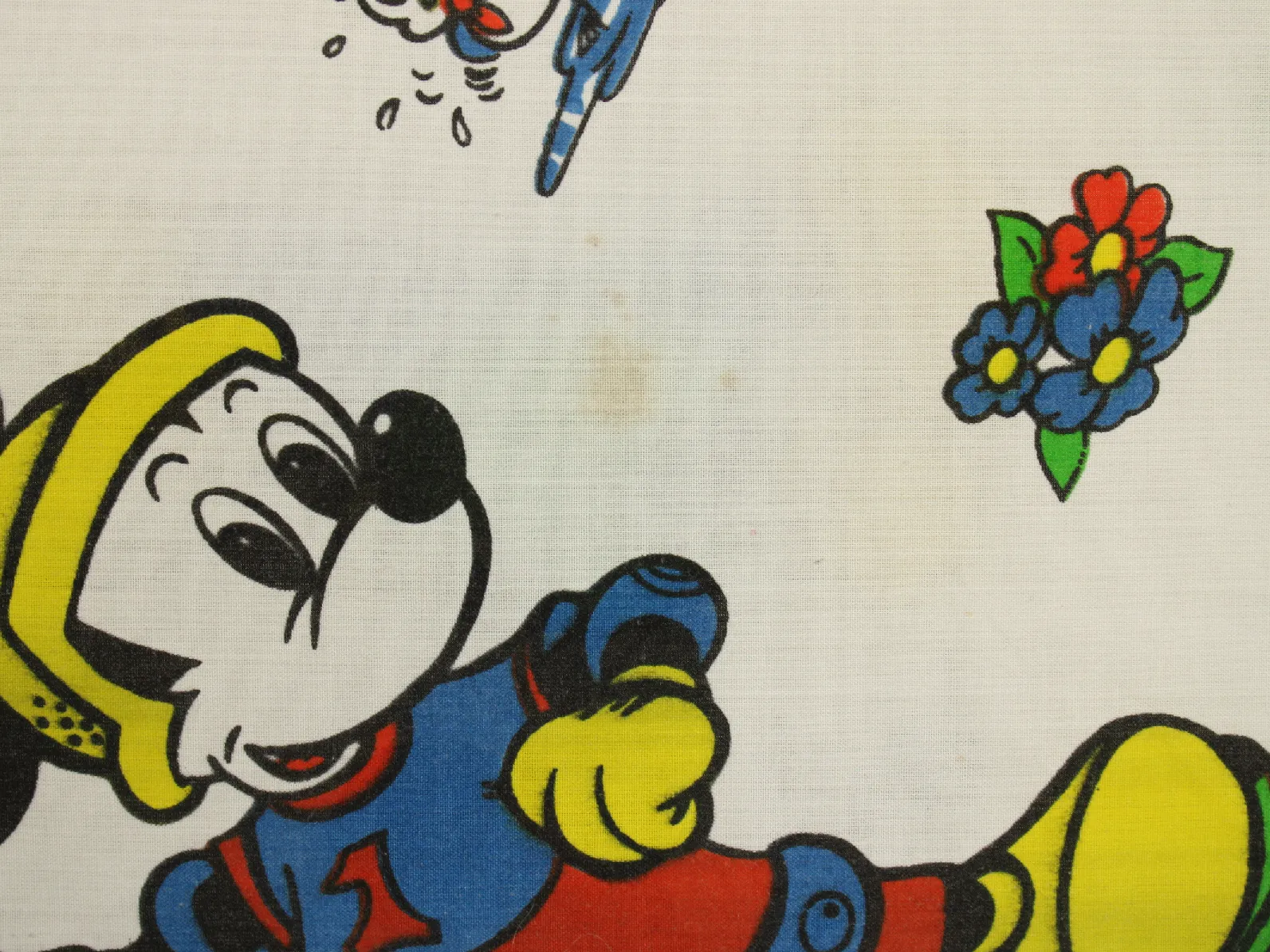 WALT DISNEY PRODUCTIONS、ミッキー&ミニー、キャラクタービンテージシーツ。解体生地。