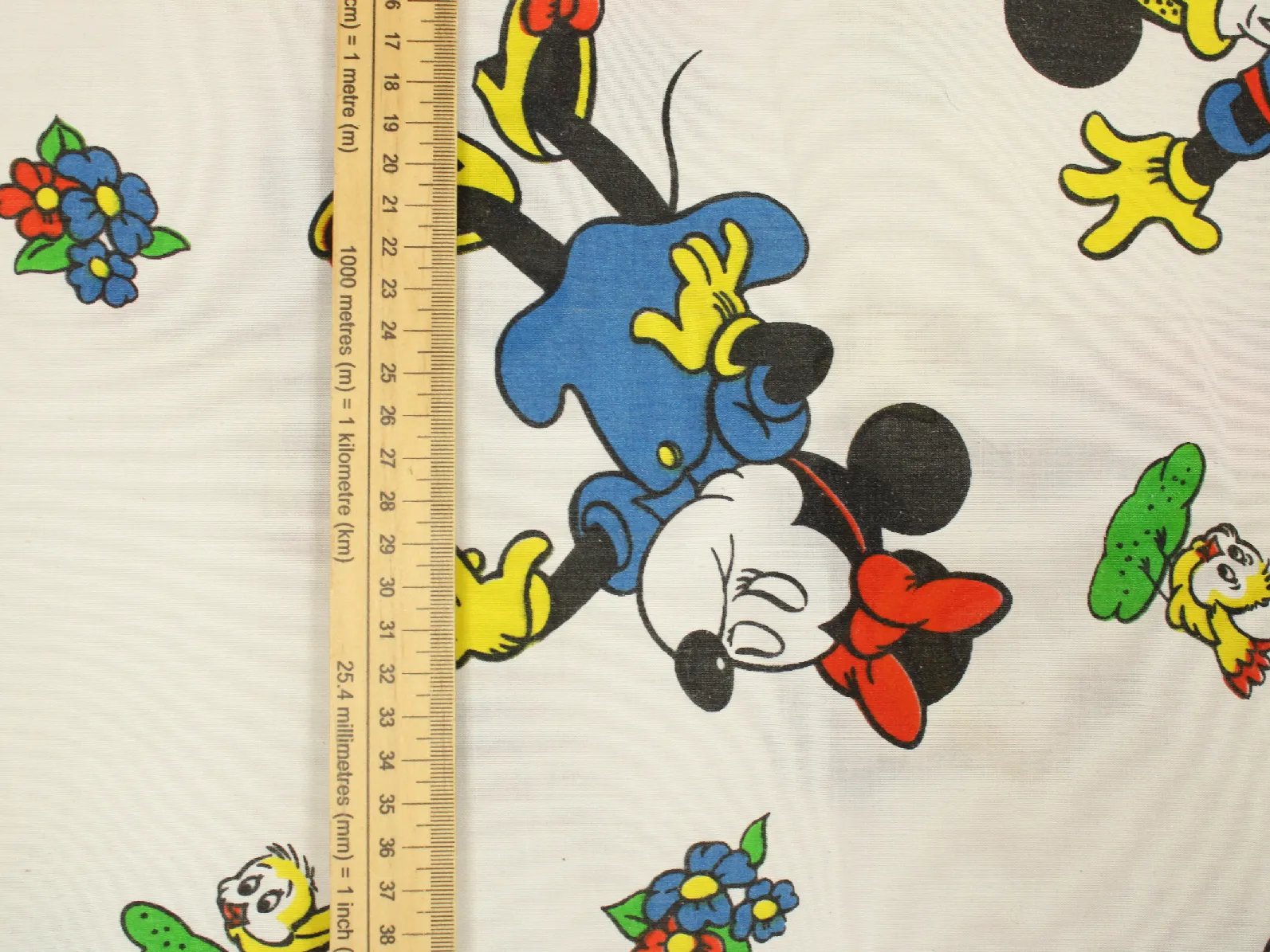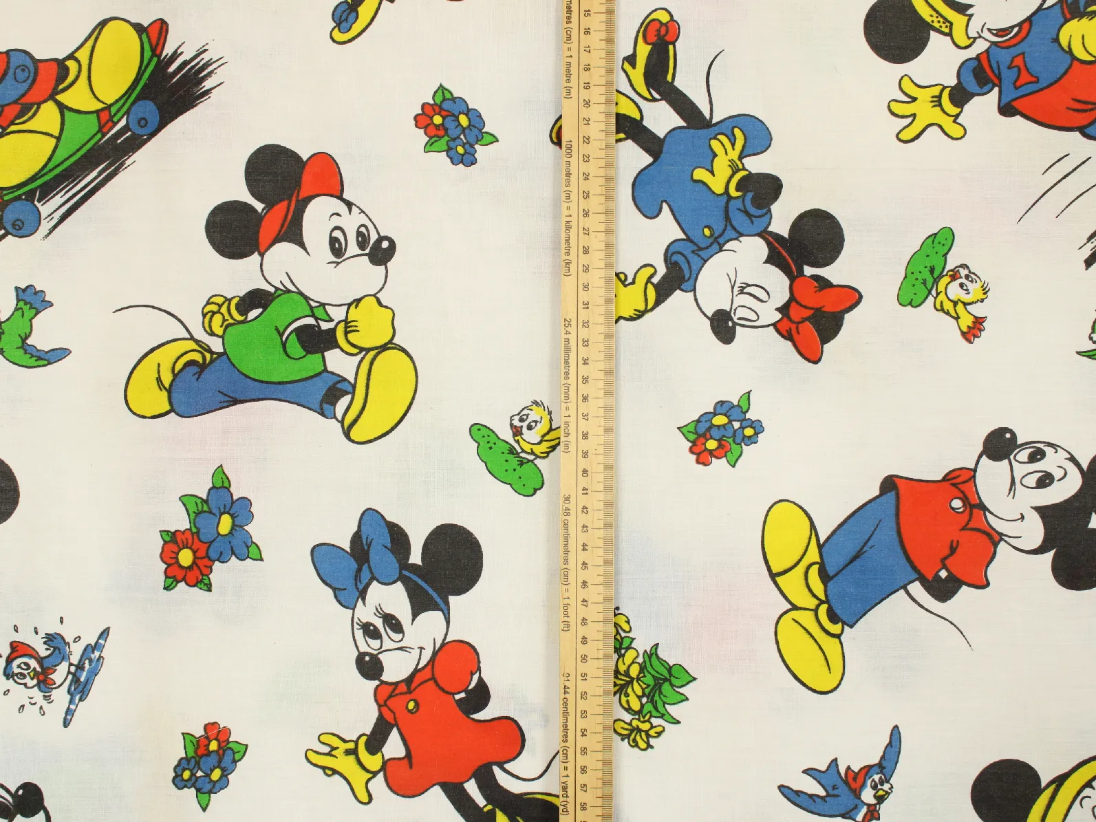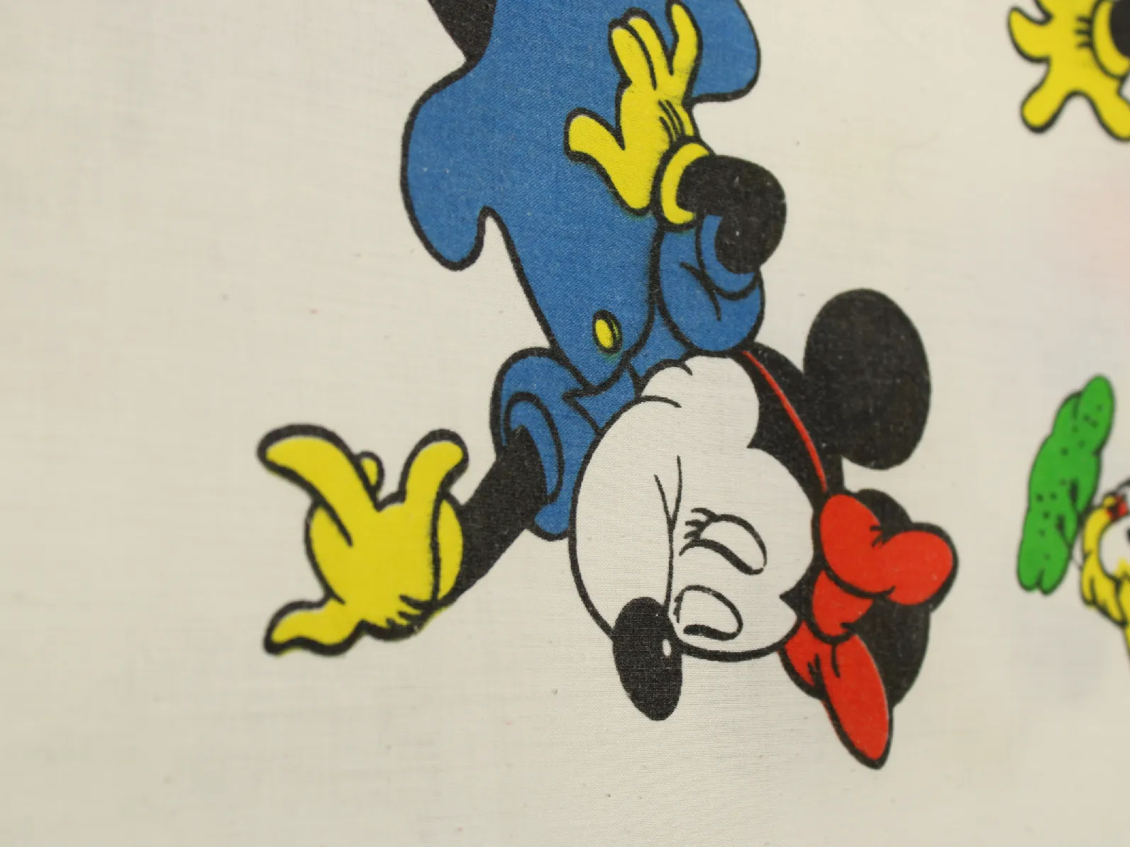 WALT DISNEY PRODUCTIONS、ミッキー&ミニー、キャラクタービンテージシーツ。解体生地。