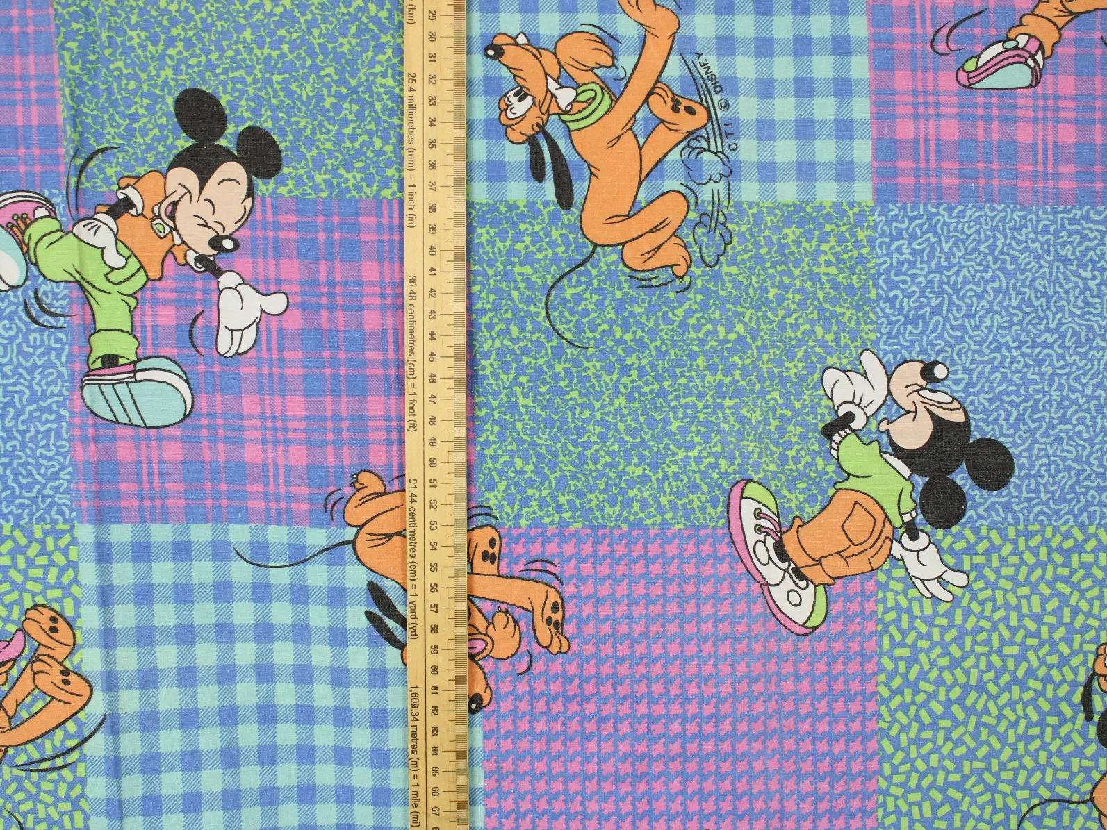 ディズニー、ミッキー、ミニー、キャラクタービンテージシーツ。解体生地。